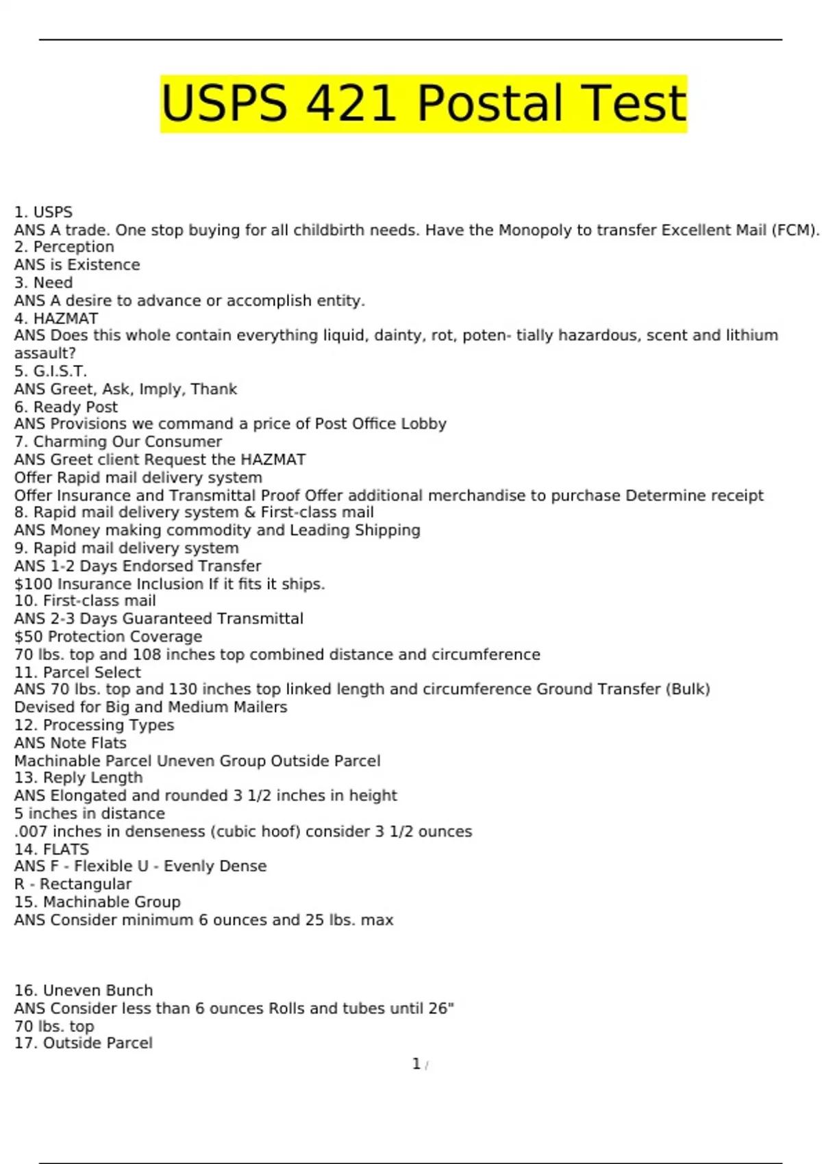 USPS 421 Postal Exam Questions and Answers (2024 / 2025) (Verified Answers)
