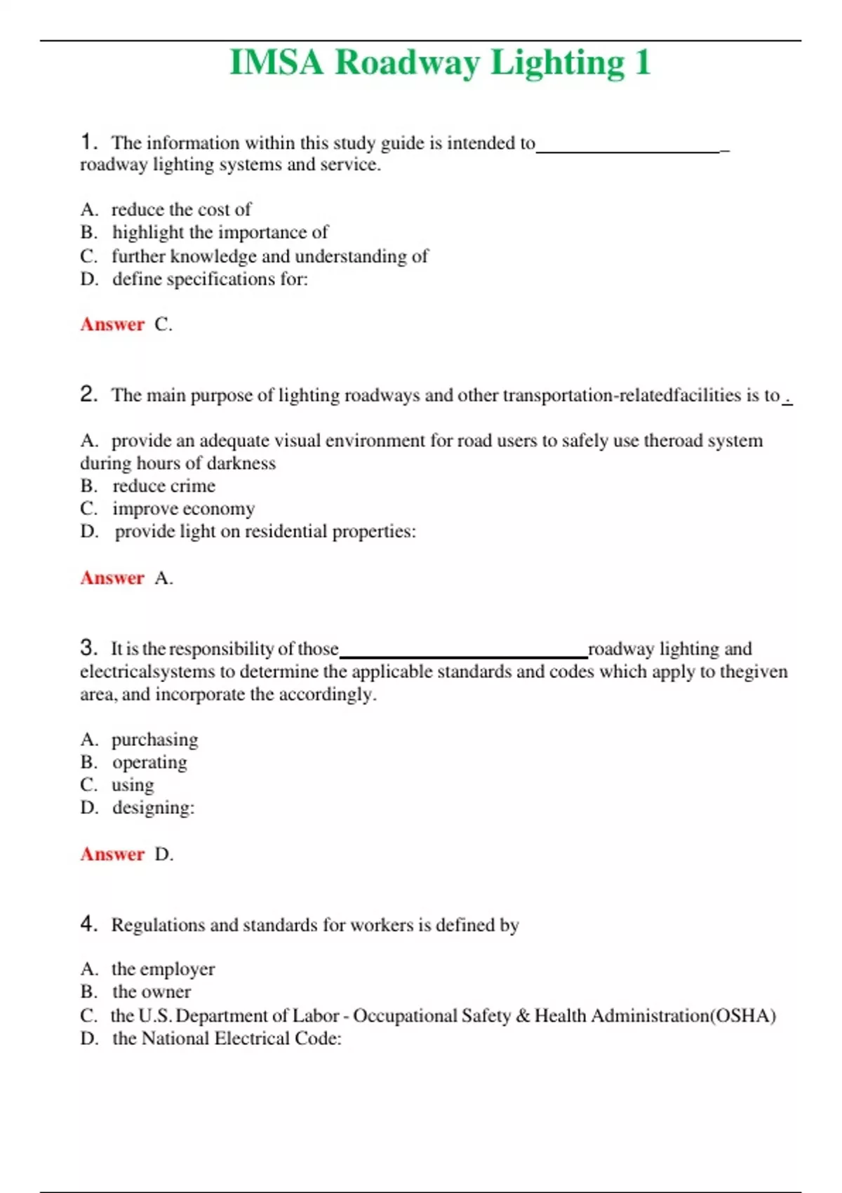 2024 IMSA Roadway Lighting 1 | Actual Questions and Verified Answers ( Included ) 100% Correct