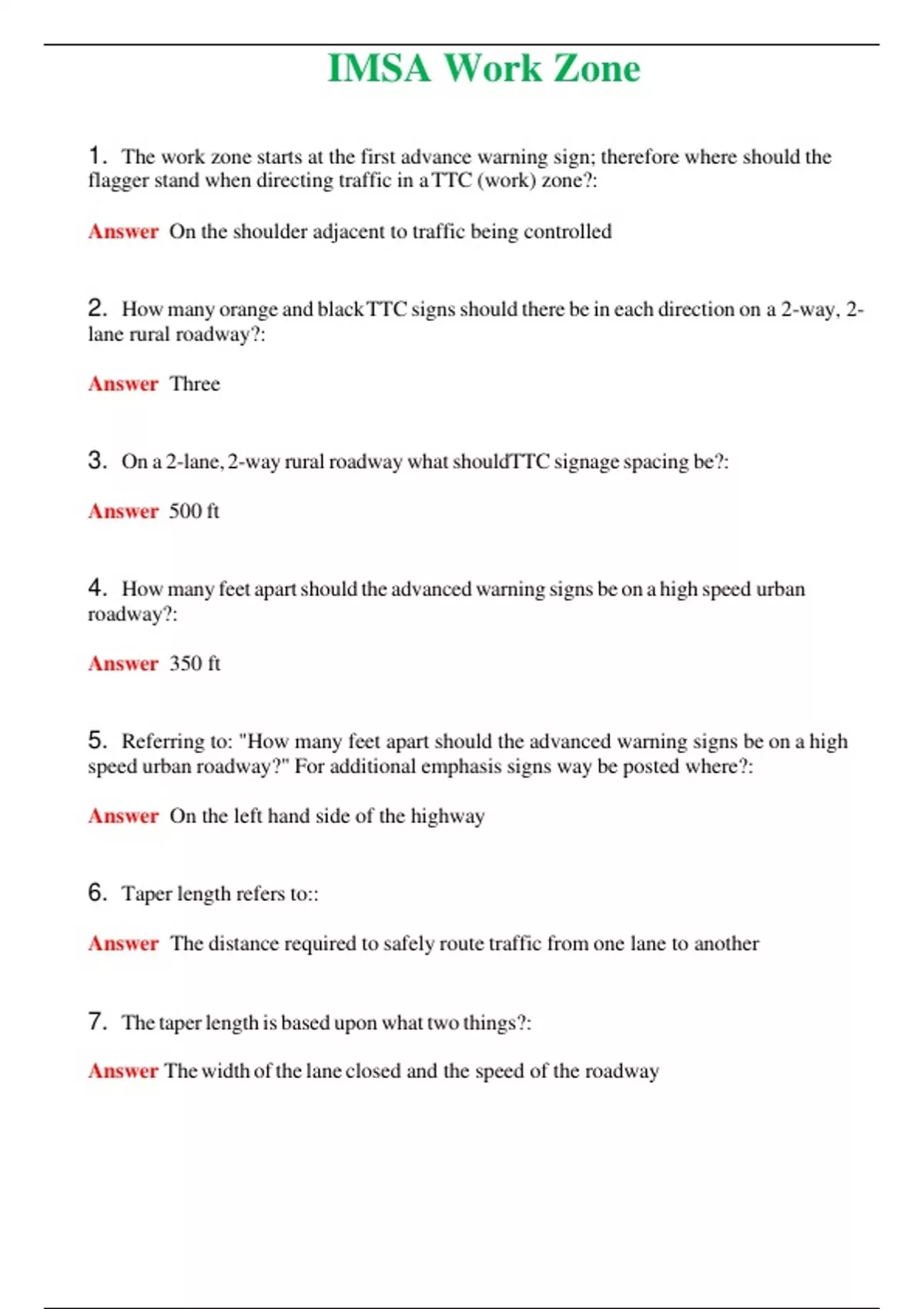 2024 IMSA Work Zone | Actual Questions and Verified Answers ( Included ) 100% Correct