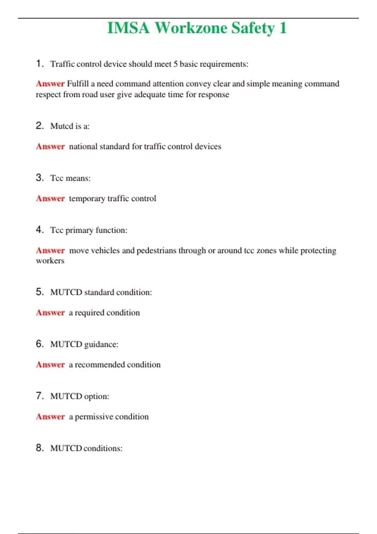 2024 IMSA Workzone Safety 1 | Actual Questions and Verified Answers ( Included ) 100% Correct