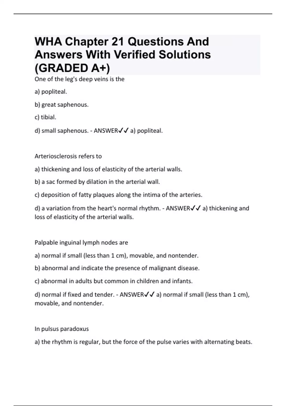 WHA Chapter 21 Questions And Answers With Verified Solutions (GRADED A+)