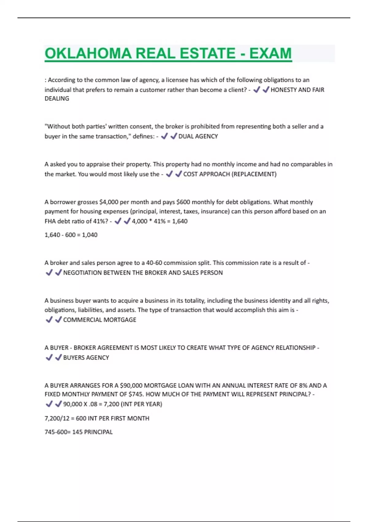 OKLAHOMA REAL ESTATE - EXAM QUESTIONS & ANSWERS RATED 100% CORRECT