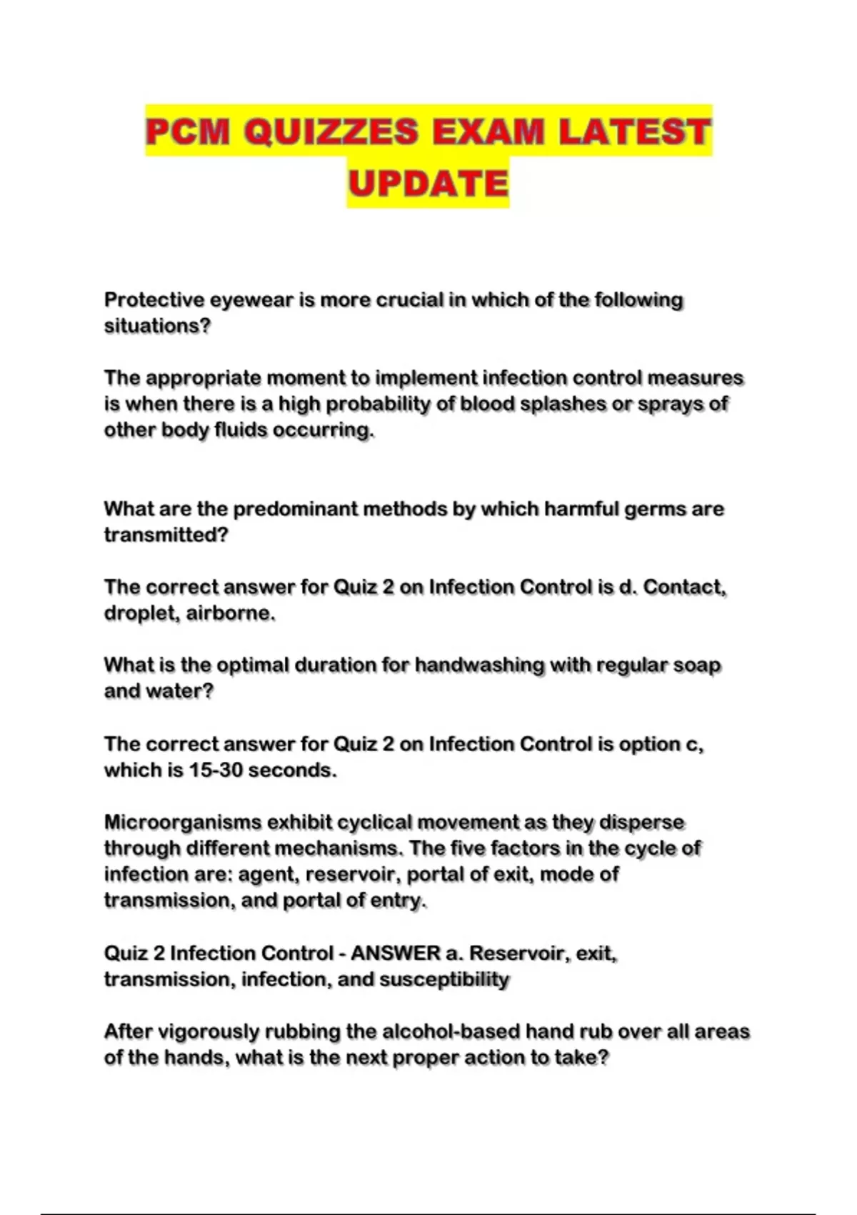 PCM QUIZZES EXAM LATEST UPDATE...