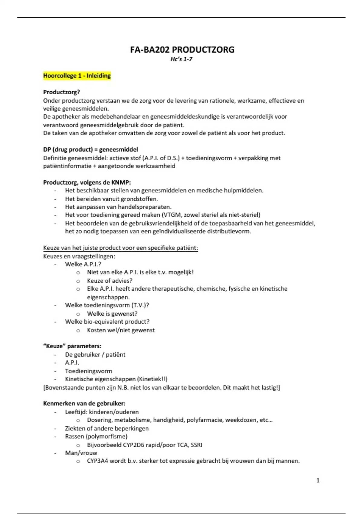 Samenvatting van alle hoorcolleges van FA-BA202