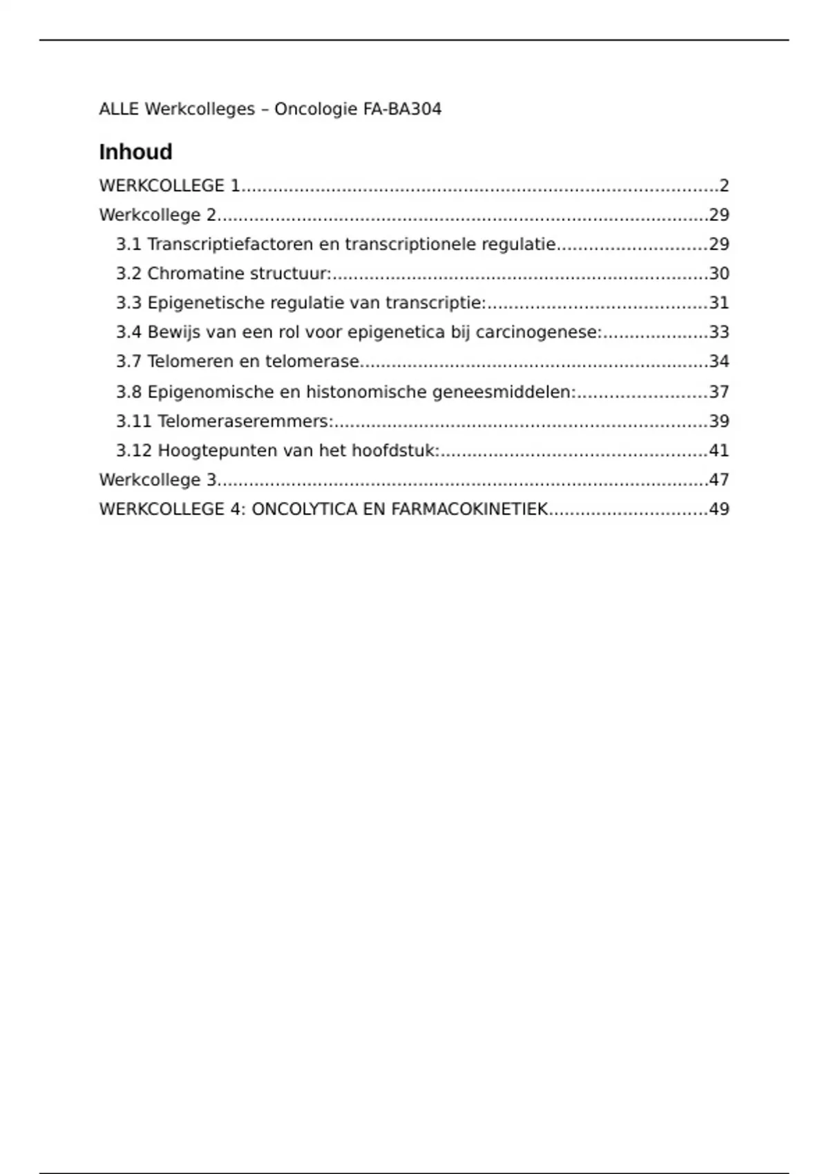 Uitwerking van alle werkcolleges van oncologie (FA-BA304)