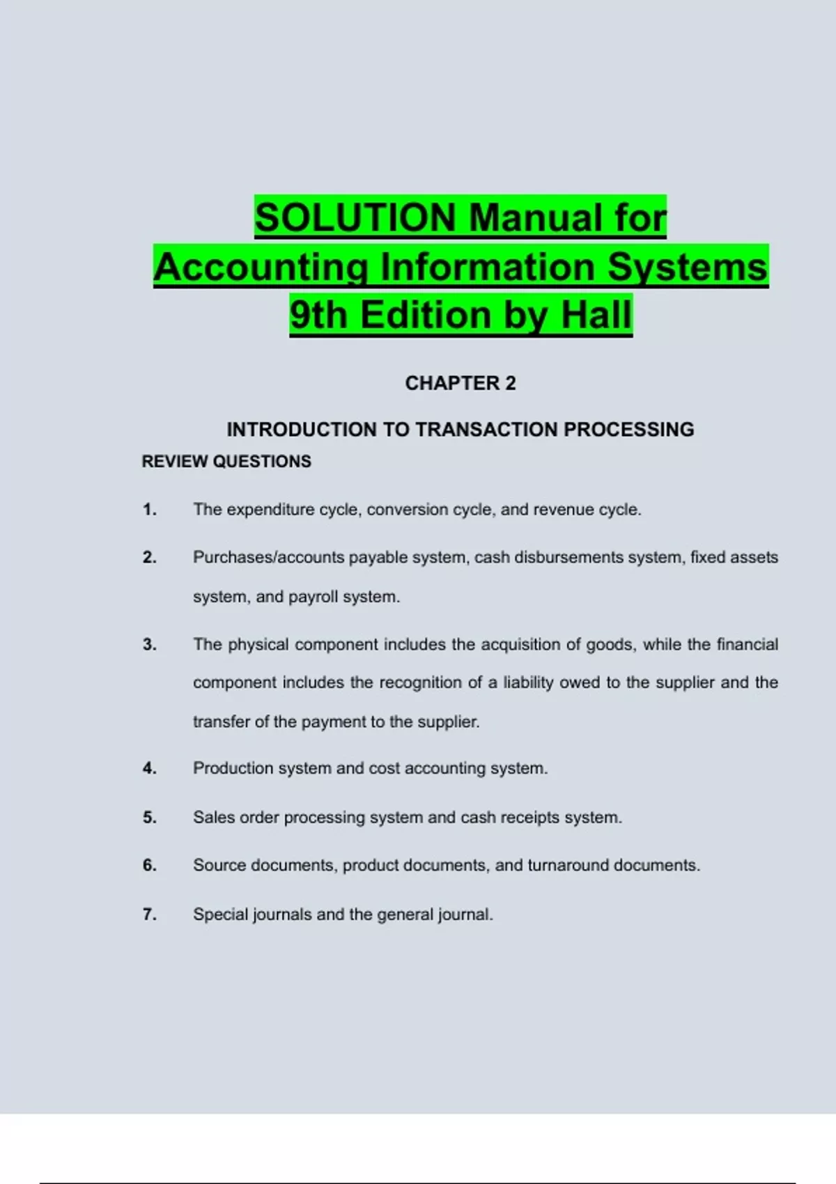 SOLUTION Manual for Accounting Information Systems 9th Edition by Hall
