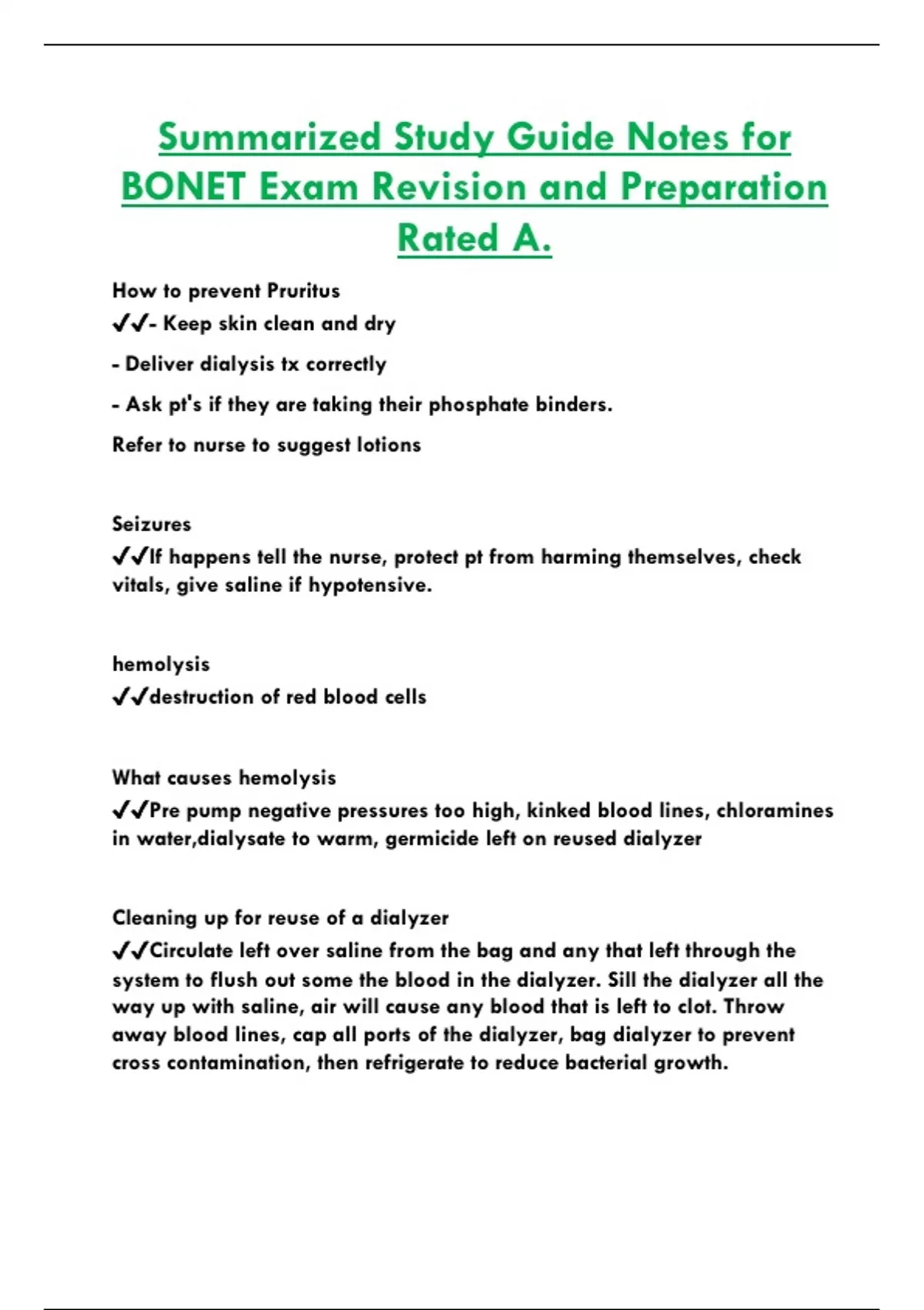 Summarized Study Guide Notes for BONET Exam Revision and Preparation Rated A.