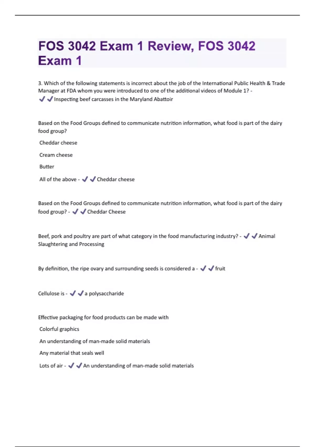 FOS 3042 Exam 1 Review, FOS 3042 Exam 1 Questions and Answers 100% Solved correctly