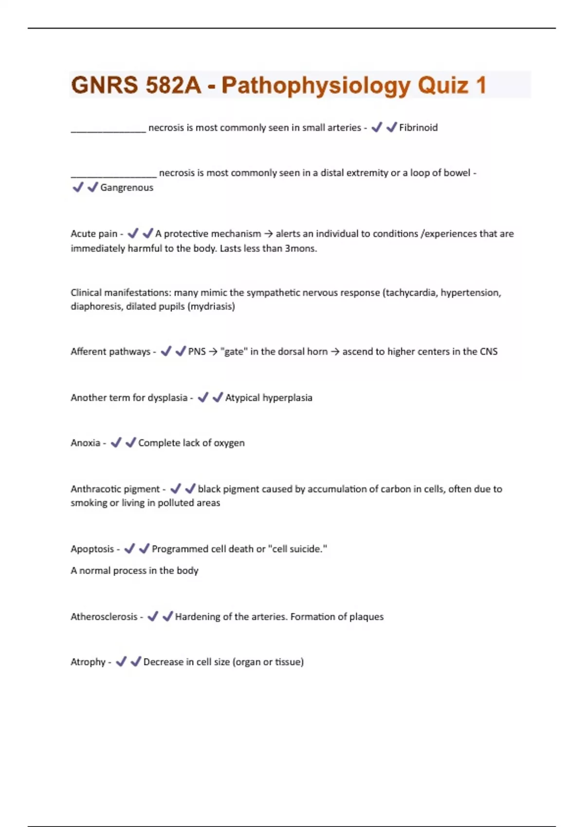 GNRS 582A - Pathophysiology Quiz 1 Questions and Answers 100% Pass