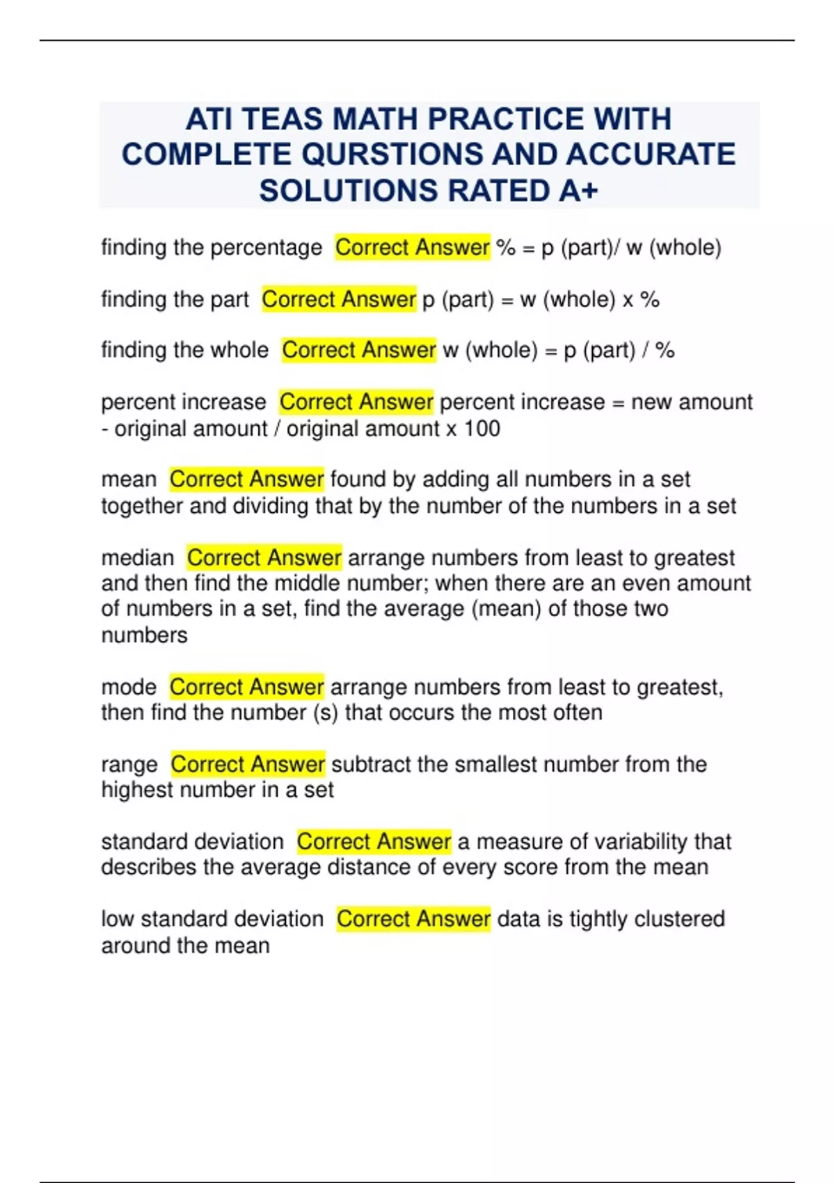 ATI TEAS MATH PRACTICE WITH COMPLETE QURSTIONS AND ACCURATE SOLUTIONS RATED A+