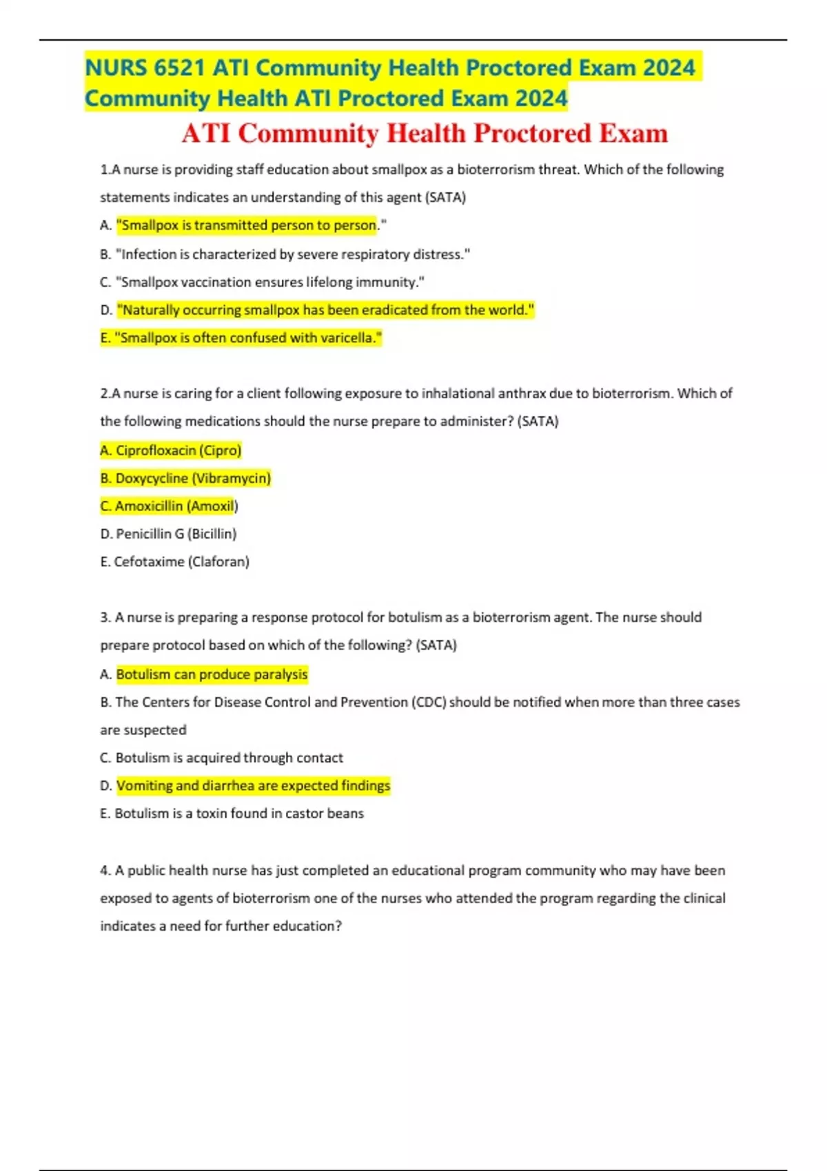 NURS 6521 ATI Community Health Proctored Exam 2024 Community Health ATI Proctored Exam 2024