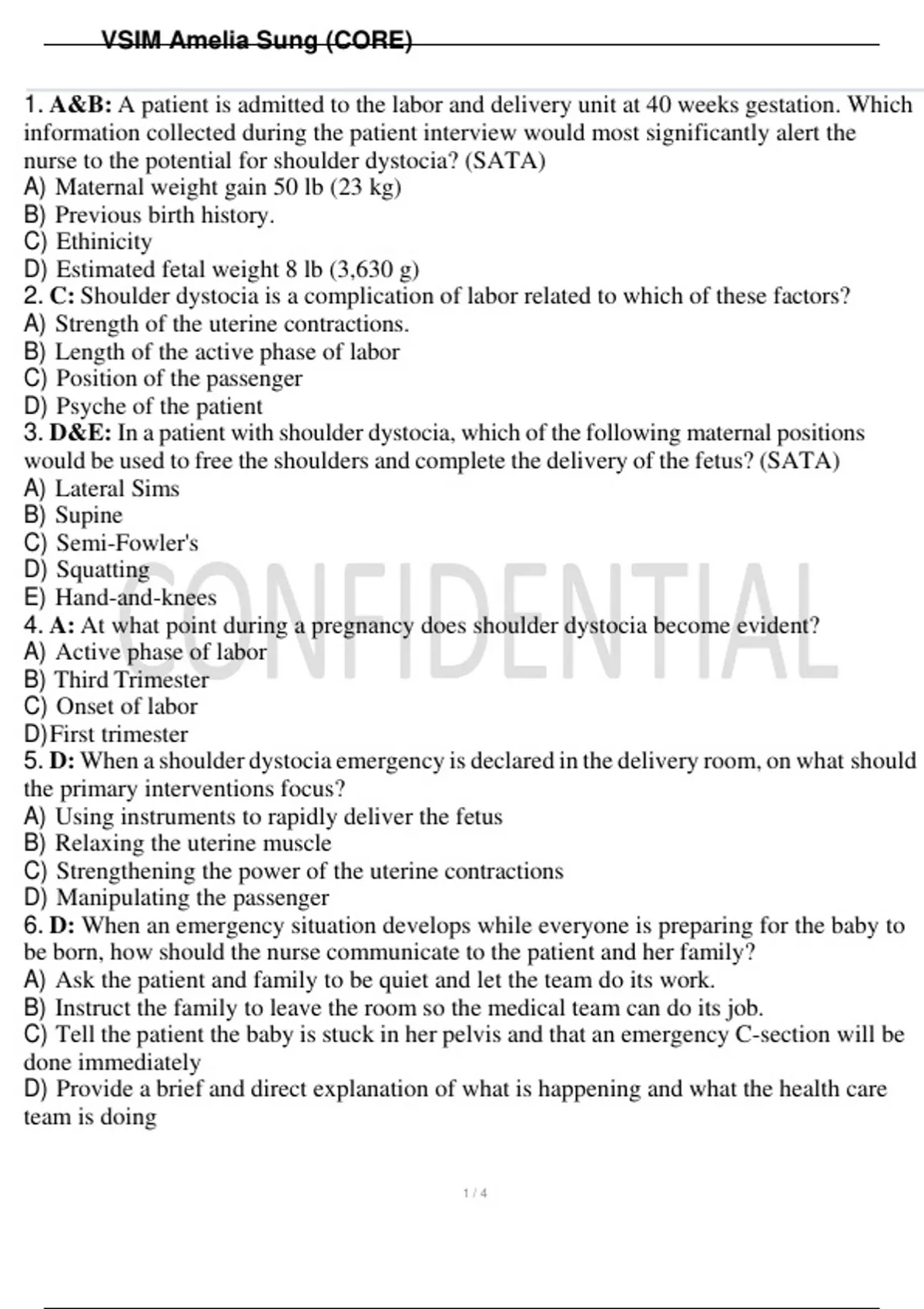 4. A: At what point during a pregnancy does shoulder dystocia become evident?