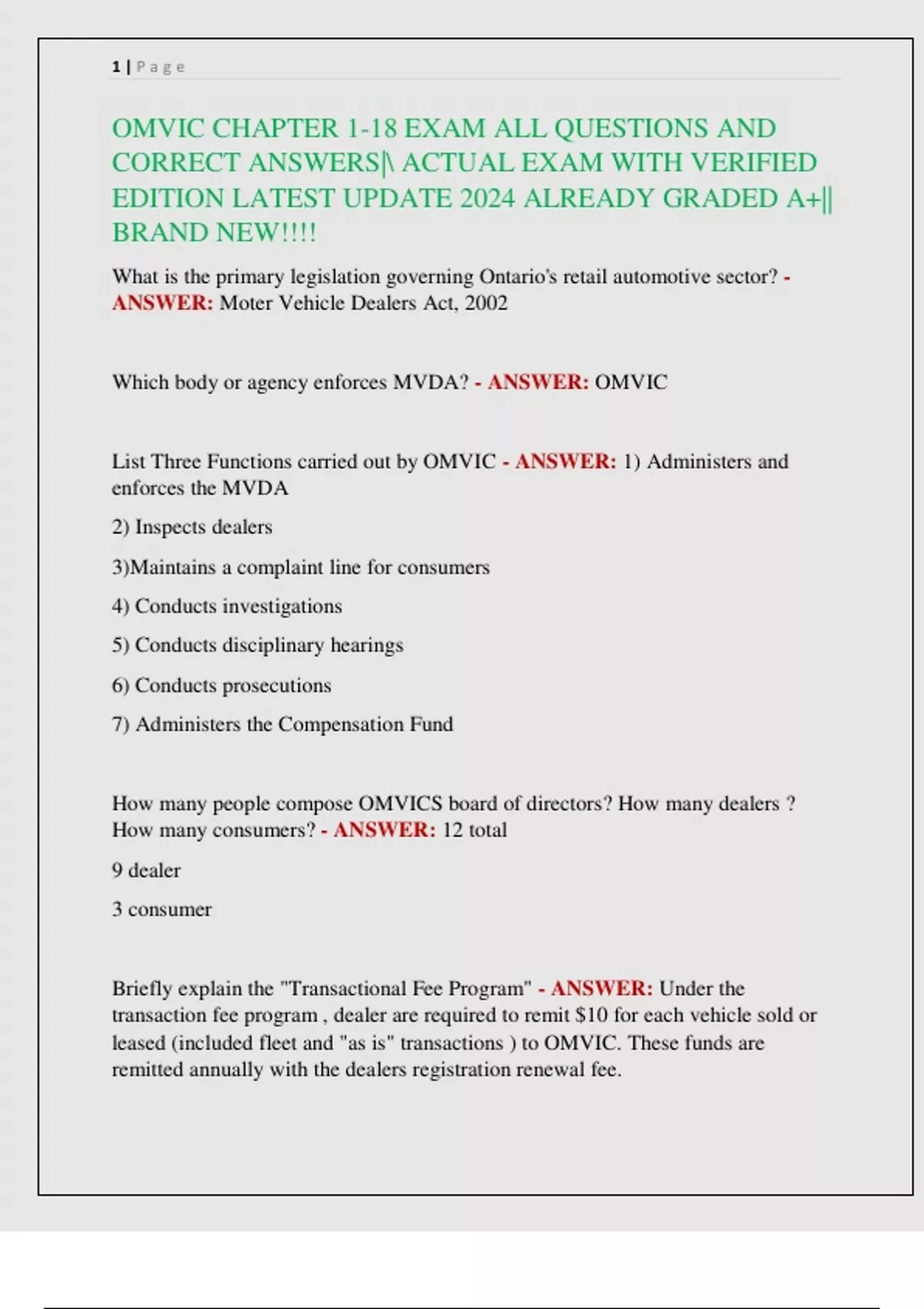 OMVIC CHAPTER 1-18 EXAM ALL QUESTIONS AND CORRECT ANSWERS| ACTUAL EXAM WITH VERIFIED EDITION LATEST UPDATE 2024 ALREADY GRADED A+|| BRAND NEW!!!!