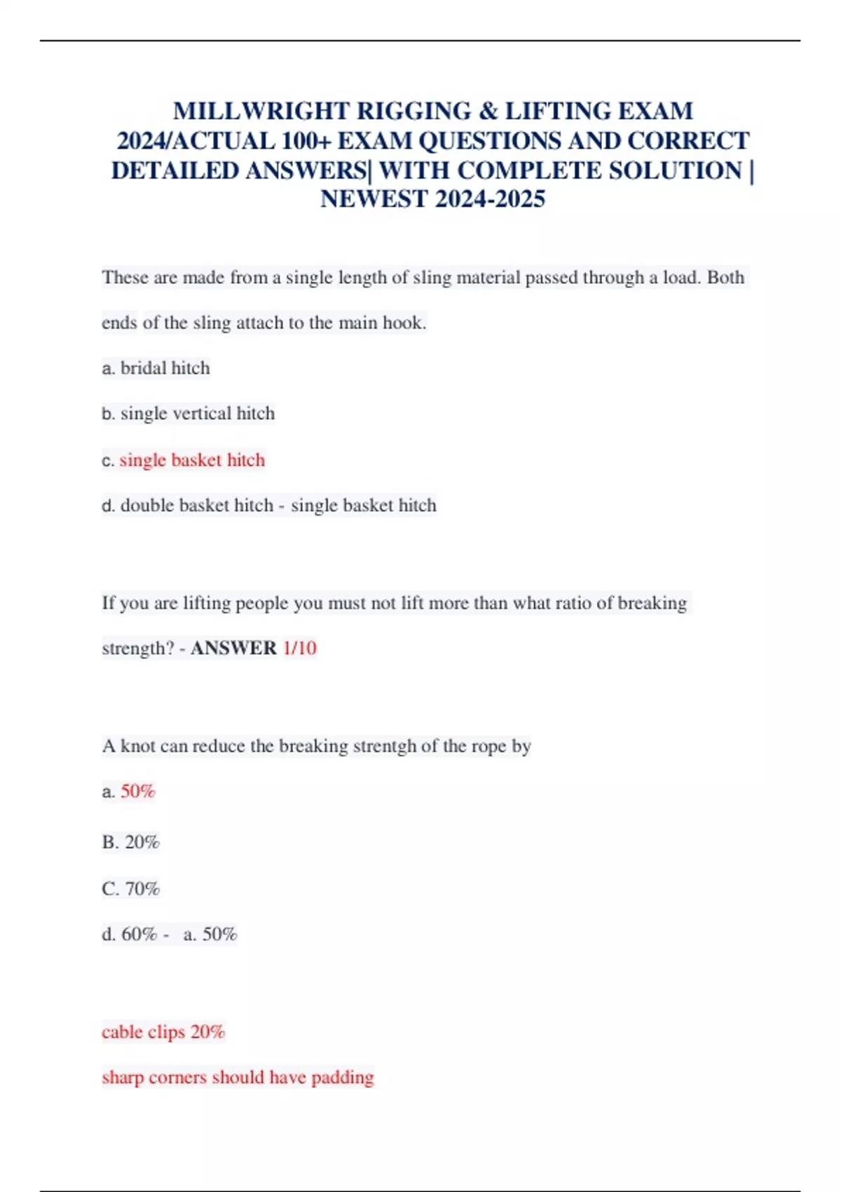 MILLWRIGHT RIGGING & LIFTING EXAM 2024/ACTUAL 100+ EXAM QUESTIONS AND CORRECT DETAILED ANSWERS| WITH COMPLETE SOLUTION | NEWEST