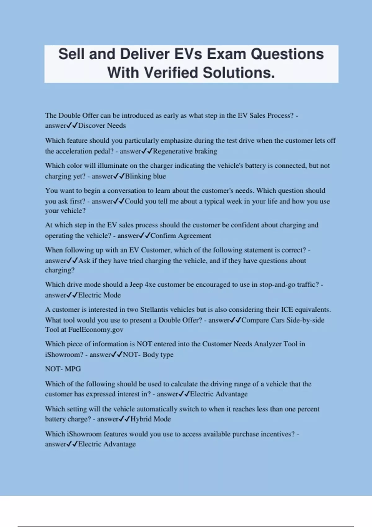 Sell and Deliver EVs Exam Questions With Verified Solutions.