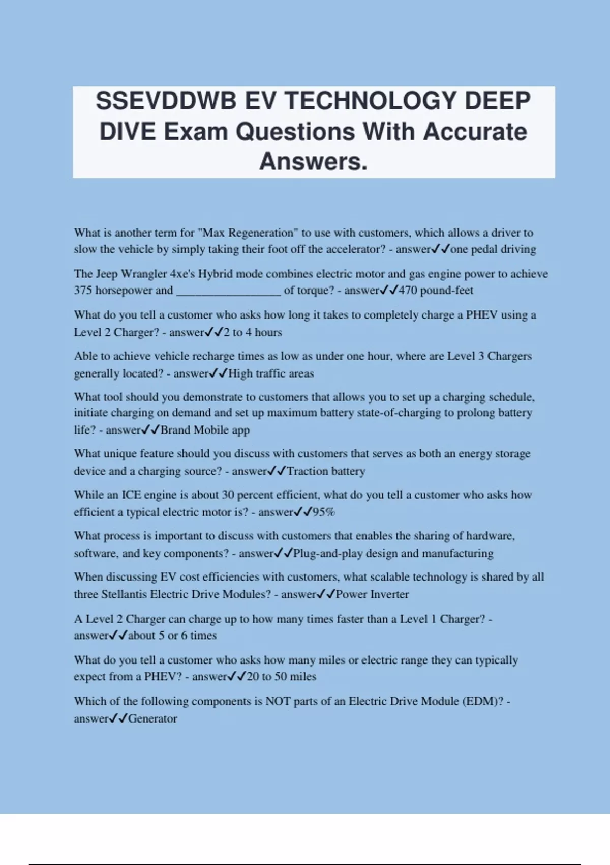 SSEVDDWB EV TECHNOLOGY DEEP DIVE Exam Questions With Accurate Answers.