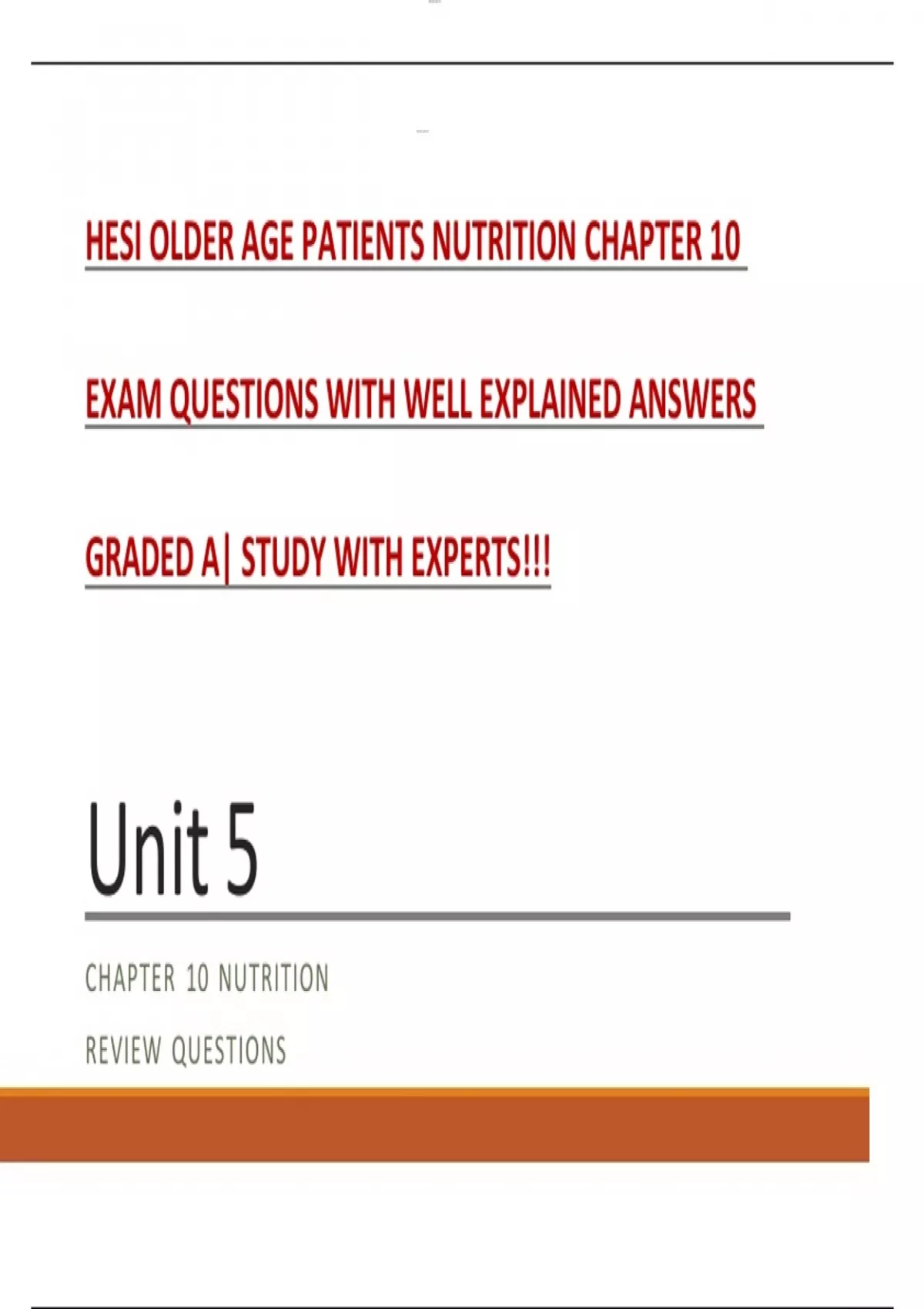 HESI OLDER AGE PATIENTS NUTRITION CHAPTER 10 EXAM QUESTIONS WITH WELL EXPLAINED ANSWERS GRADED A| STUDY WITH EXPERTS!!! HESI OLDER AGE PATIENTS NUTRITION CHAPTER 10 EXAM QUESTIONS WITH WELL EXPLAINED ANSWERS GRADED A| STUDY WITH EXPERTS!!! HESI OLDER AGE PATIENTS NUTRITION CHAPTER 10 EXAM QUESTIONS WITH WELL EXPLAINED ANSWERS GRADED A| STUDY WITH EXPERTS!!! HESI OLDER AGE PATIENTS NUTRITION CHAPTER 10 EXAM QUESTIONS WITH WELL EXPLAINED ANSWERS GRADED A| STUDY WITH EXPERTS!!! HESI OLDER AGE PATIENTS NUTRITION CHAPTER 10 EXAM QUESTIONS WITH WELL EXPLAINED ANSWERS GRADED A| STUDY WITH EXPERTS!!!
