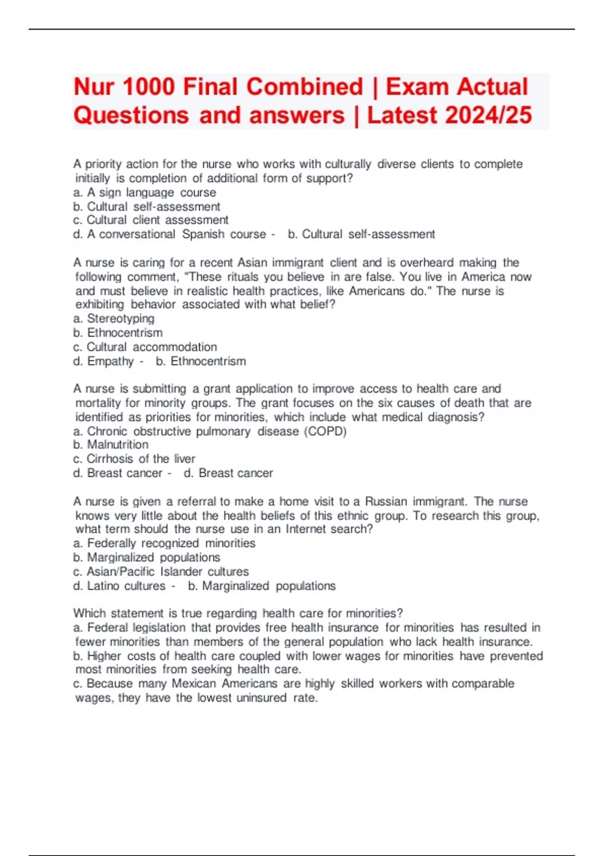 Nur 1000 Final Combined | Exam Actual Questions and answers | Latest 2024/25