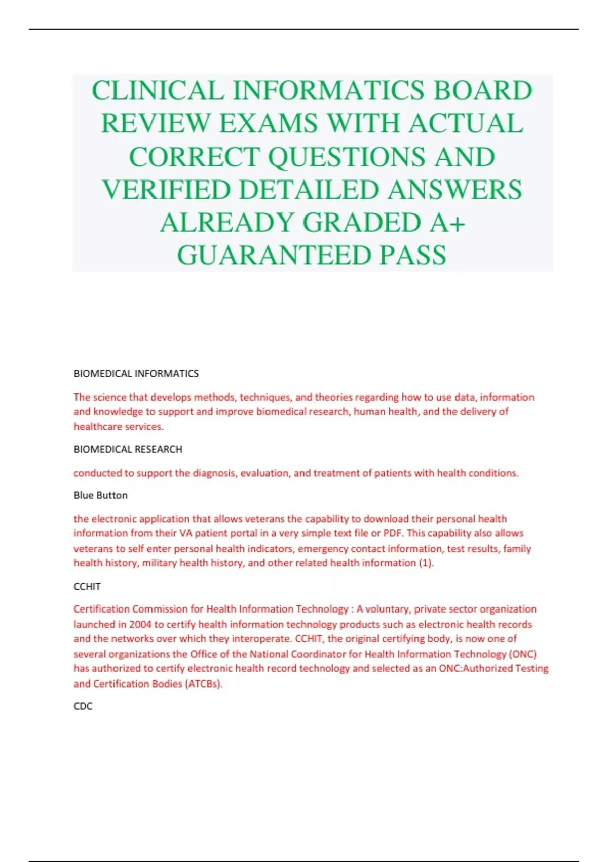 CLINICAL INFORMATICS BOARD REVIEW EXAMS WITH ACTUAL CORRECT QUESTIONS AND VERIFIED DETAILED ANSWERS ALREADY GRADED A+ GUARANTEED PASS