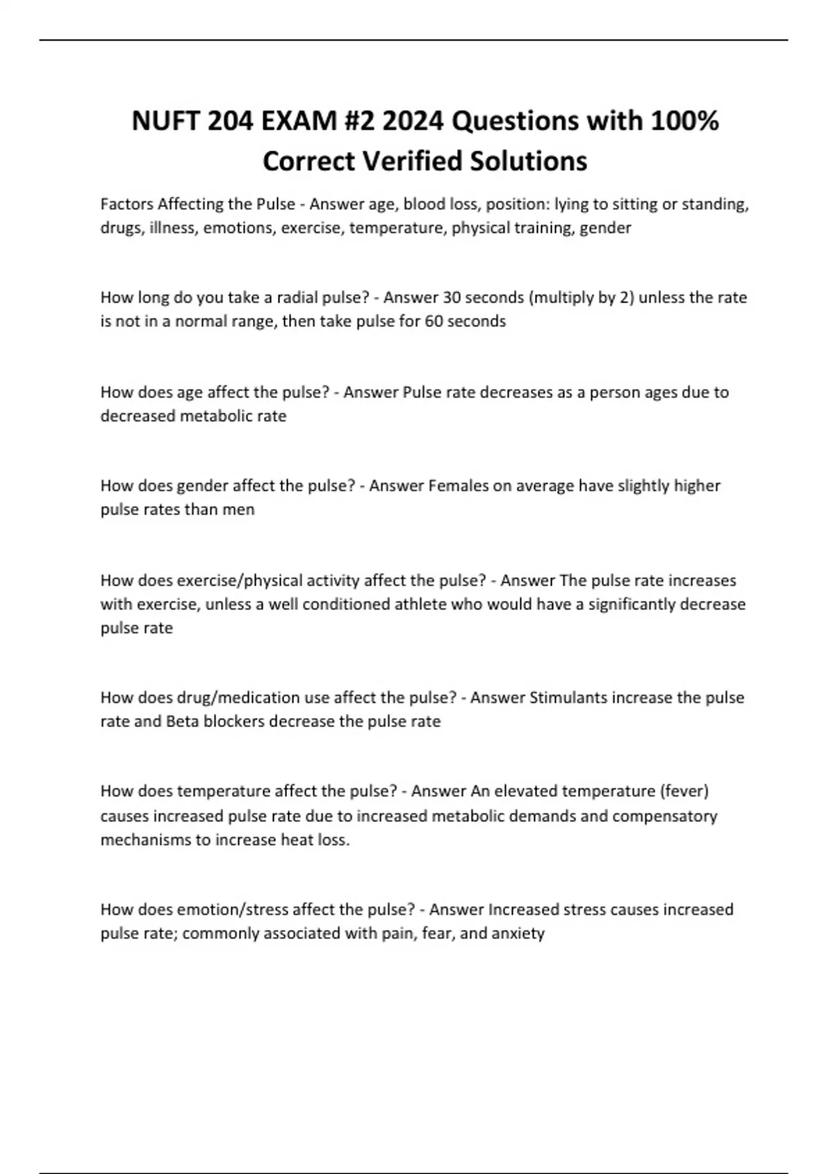 NUFT 204 EXAM #2 2024 Questions with 100% Correct Verified Solutions