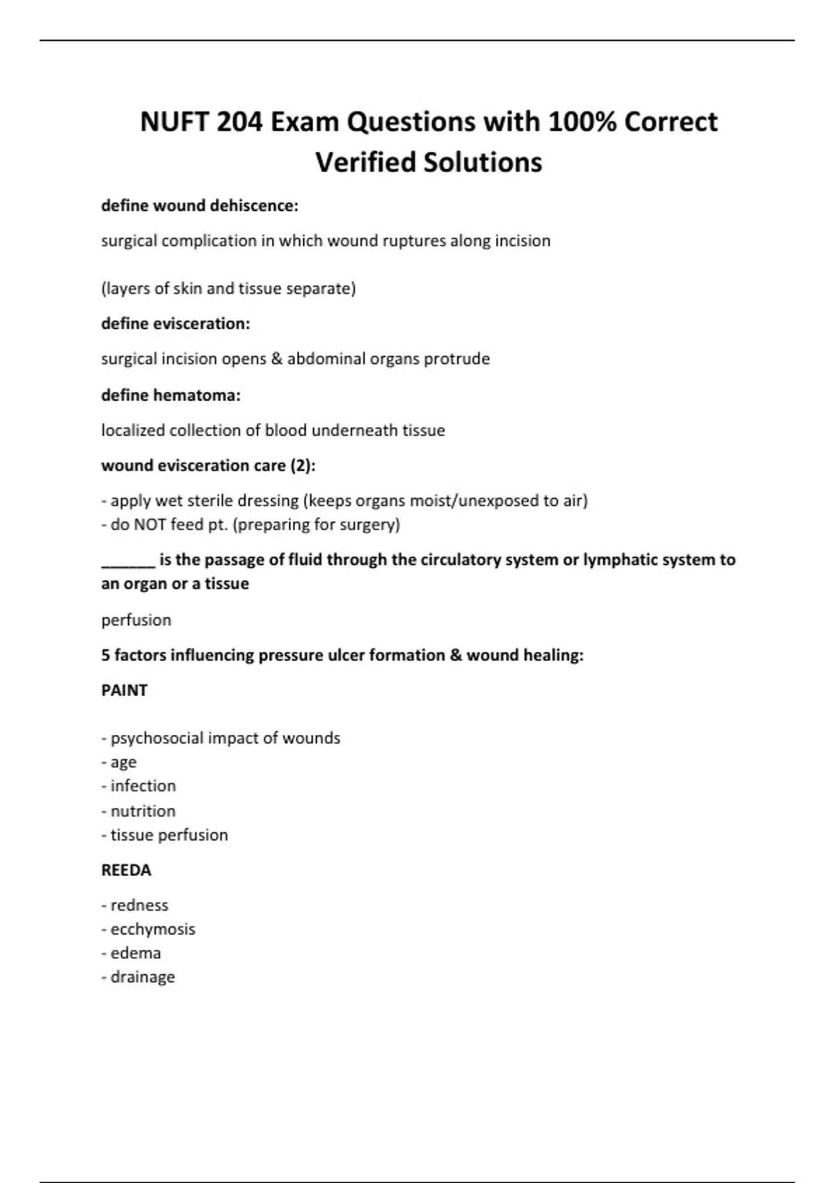 NUFT 204 Exam Questions with 100% Correct Verified Solutions