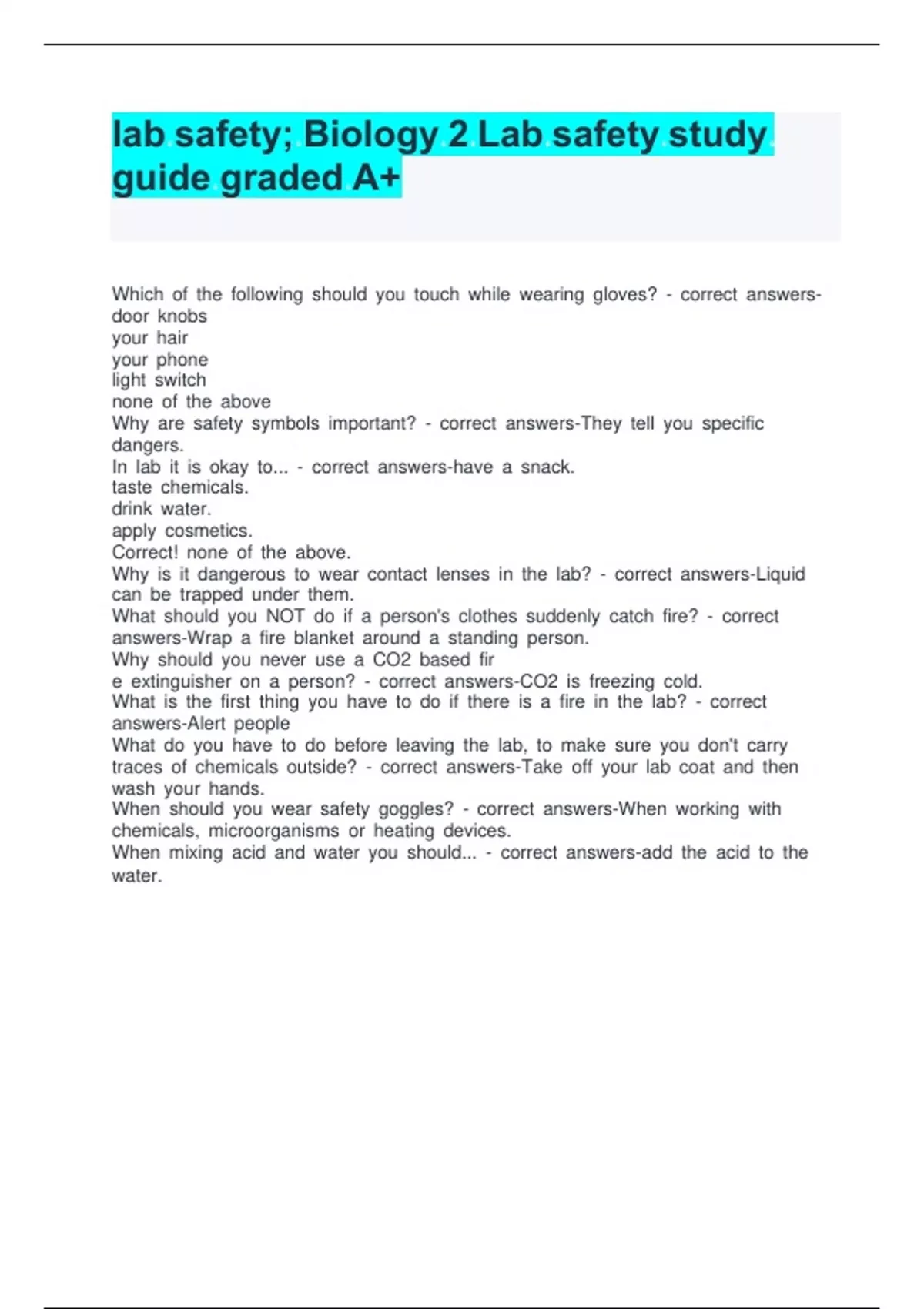 lab safety; Biology 2 Lab safety study guide graded A+ lab safety Biology 2 Lab safety