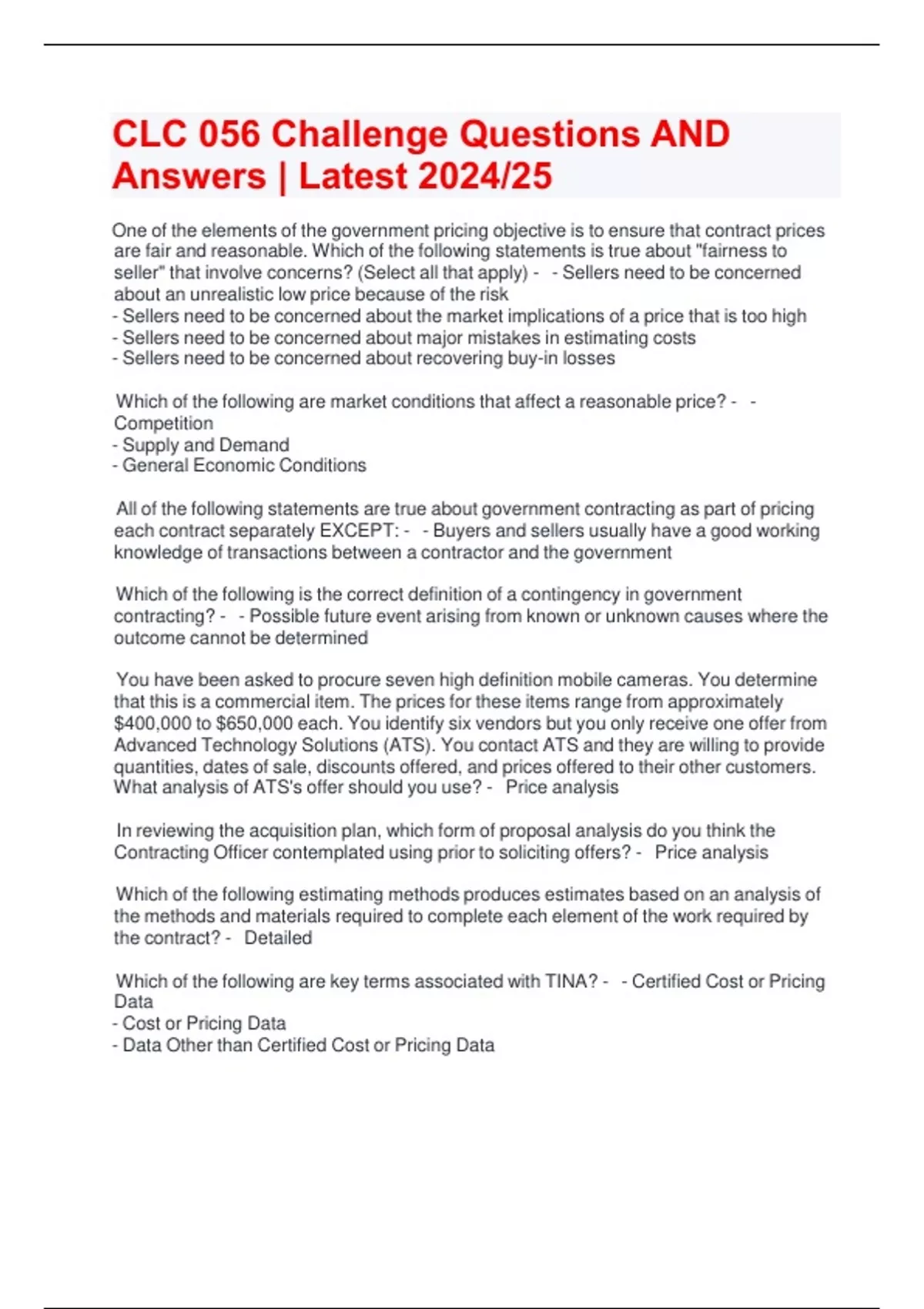 CLC 056 Challenge Questions AND Answers | Latest 2024/25
