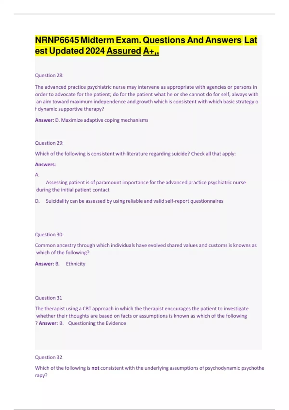NRNP6645 Midterm Exam. Questions And Answers Latest Updated 2024 Assured A+,