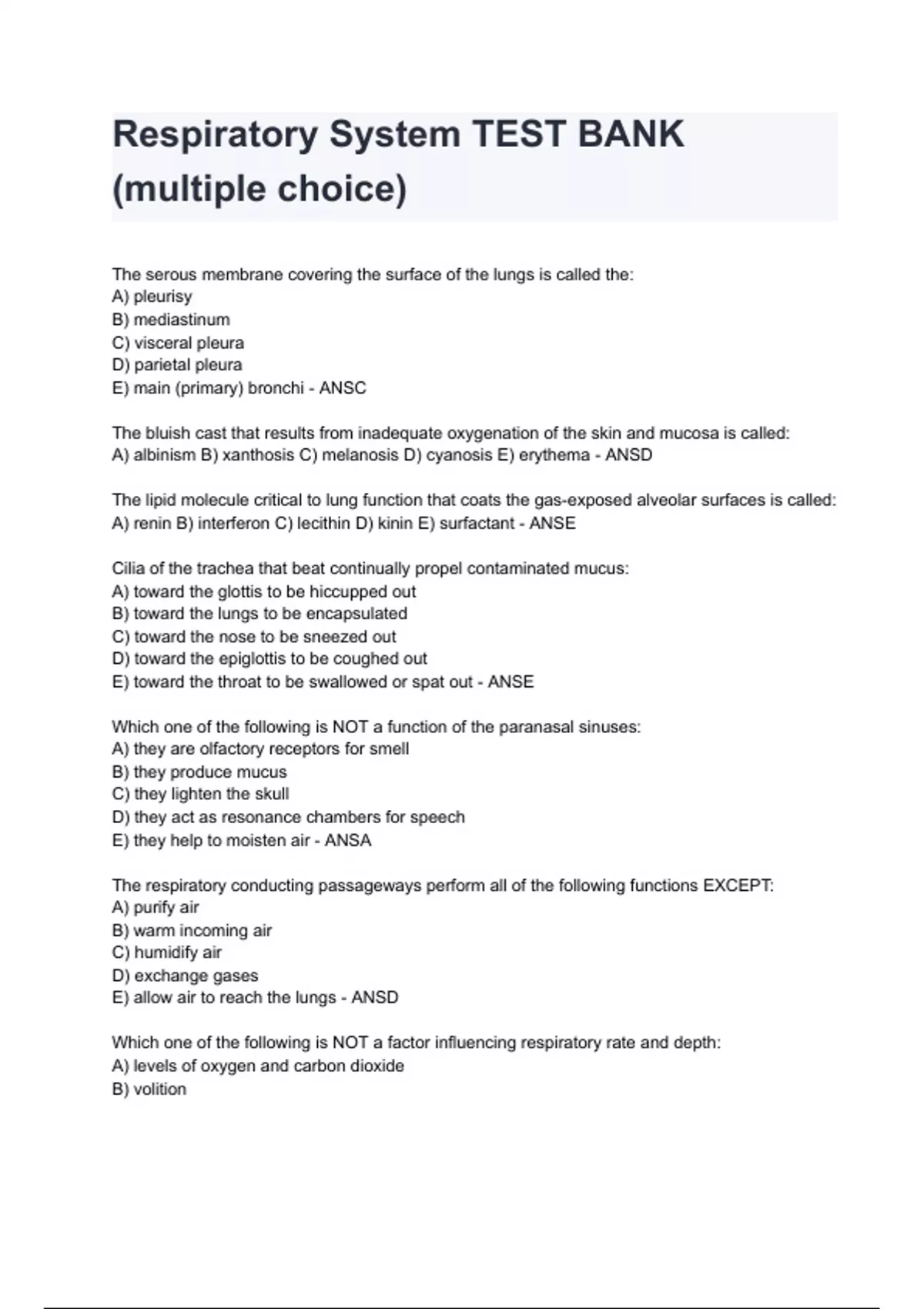 Respiratory System TEST BANK (multiple choice)