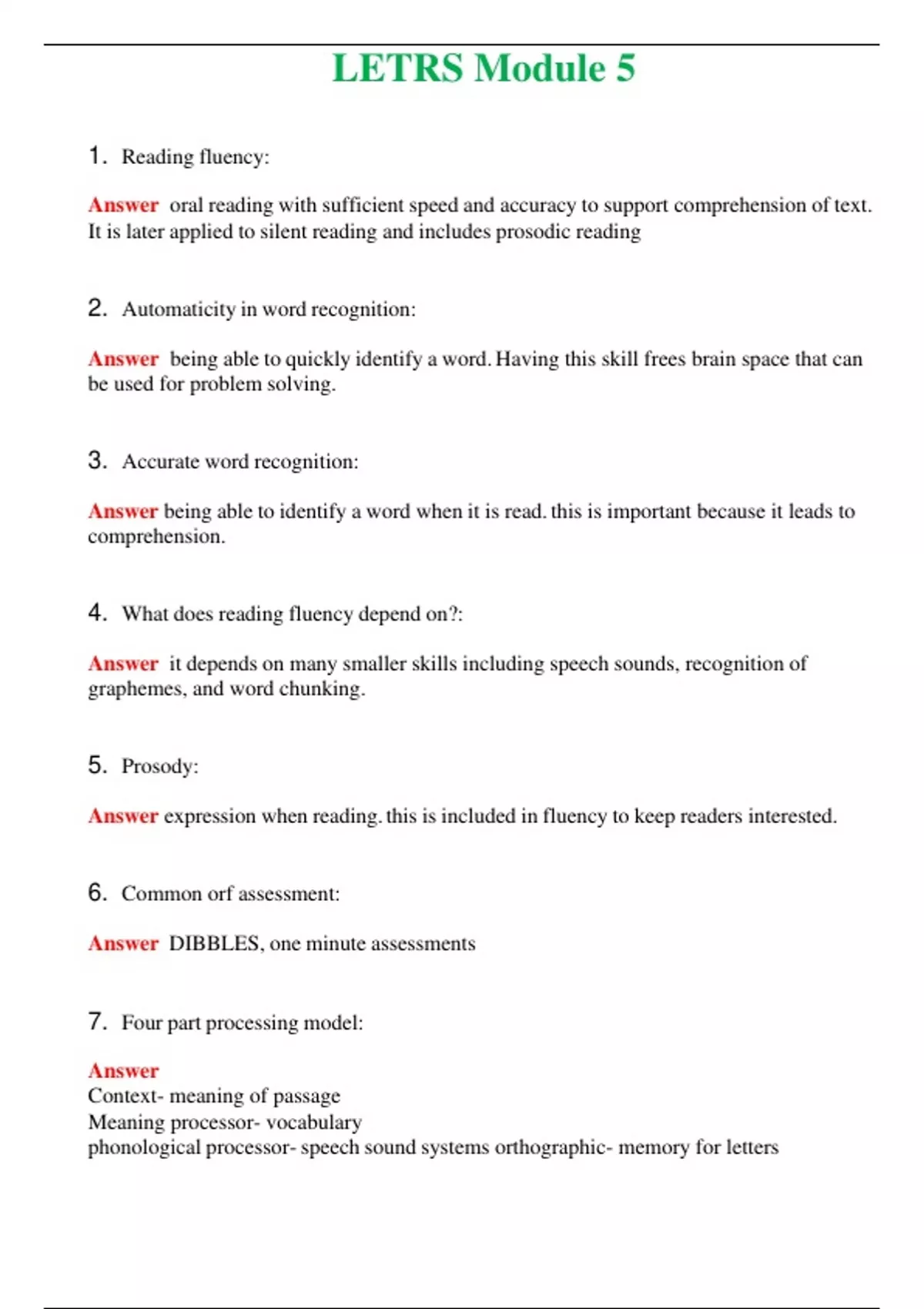 LETRS Module 5 (Latest 2024) Questions With Complete Grade A+ Answers