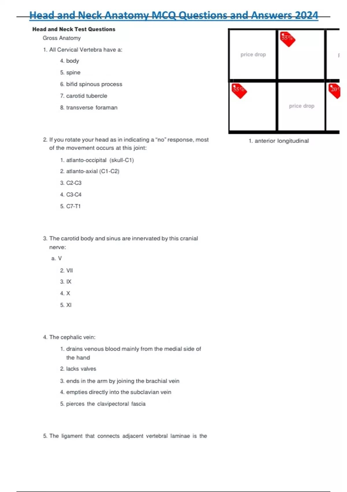 Head and Neck Anatomy MCQ Questions and Answers 2024