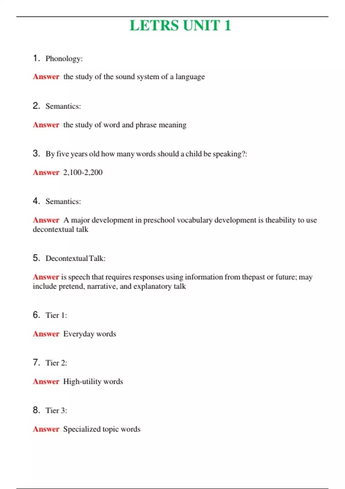 - LETRS UNIT 1