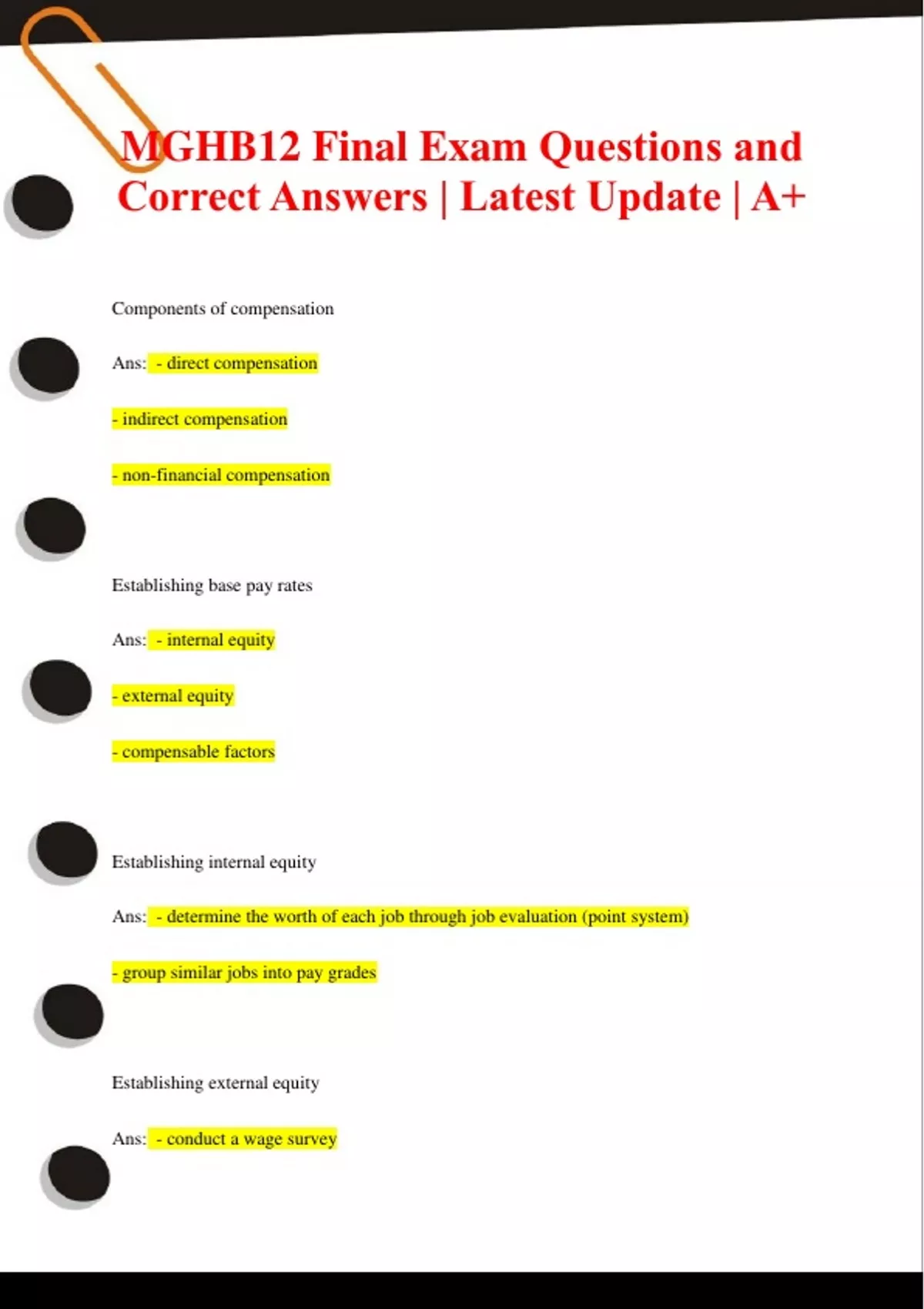 MGHB12 Final Exam Questions and Correct Answers | Latest Update | A+
