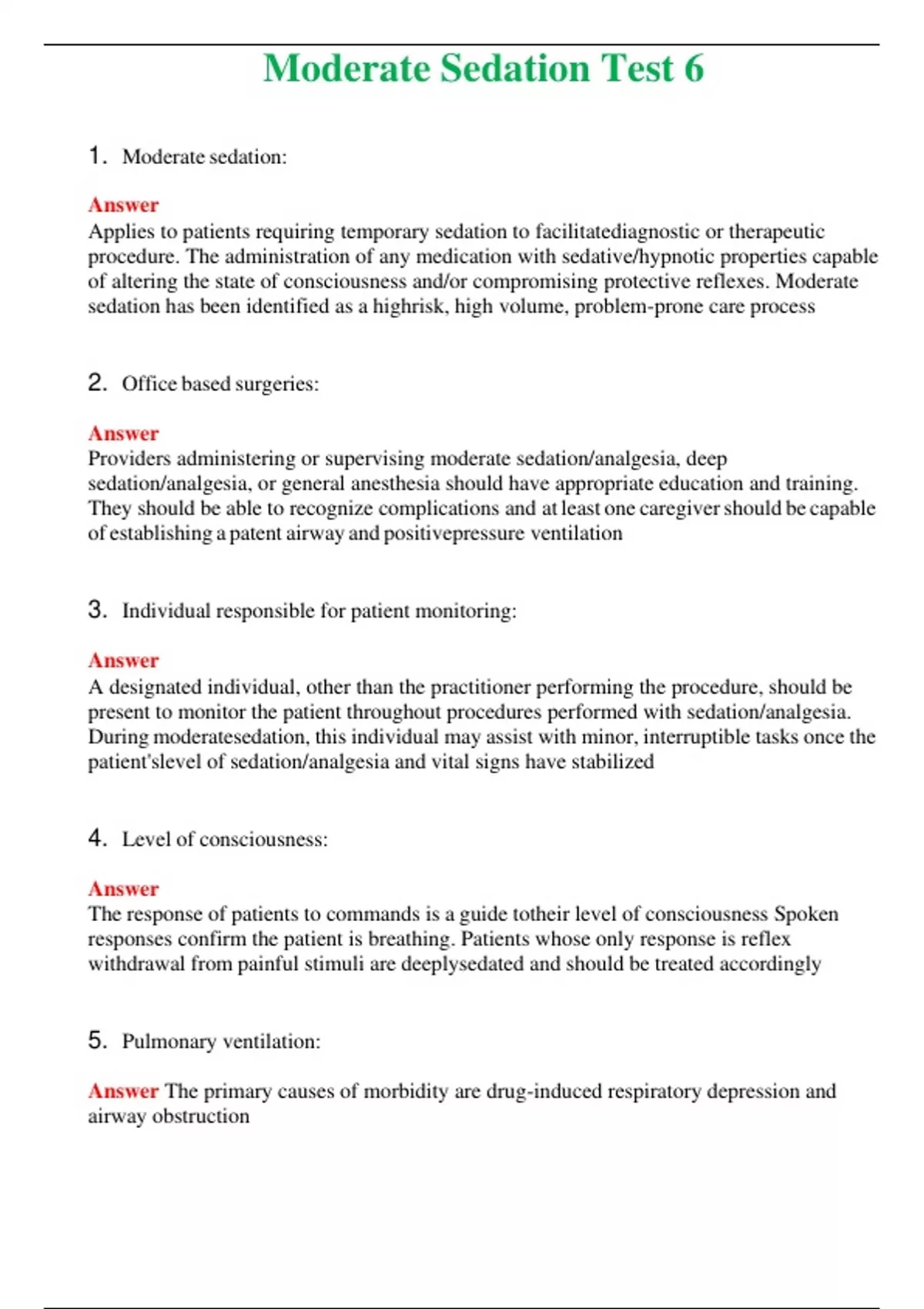 Moderate Sedation Test 6 (Latest 2024) Questions With Complete Grade A+ Answers