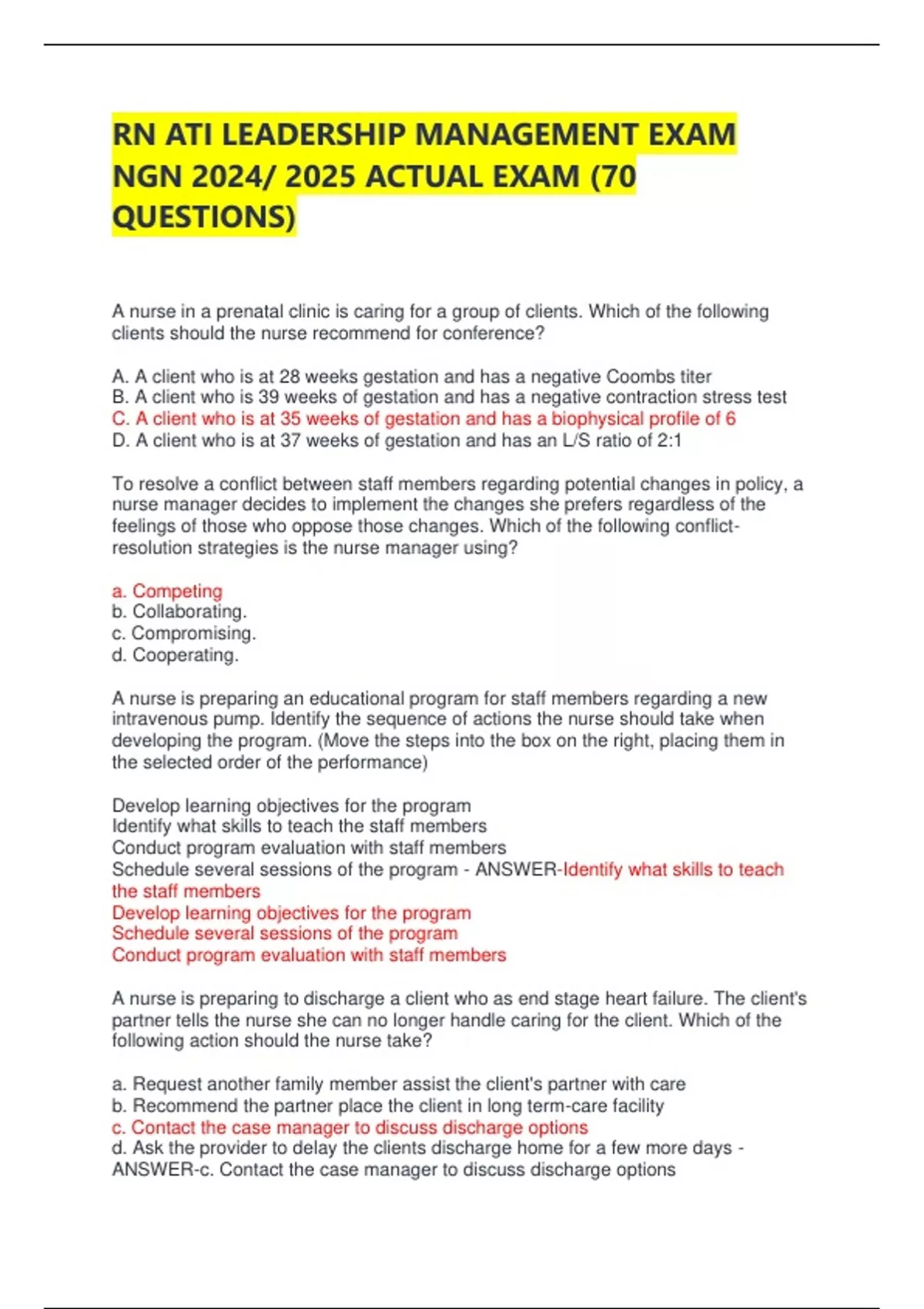rn ati leadership management exam ngn