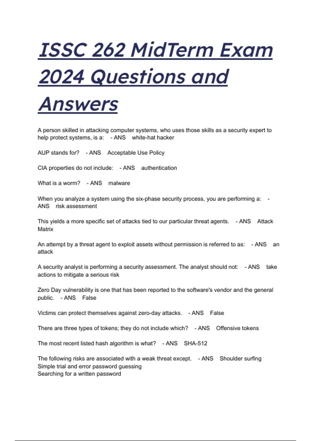 ISSC 262 MidTerm Exam 2024 Questions and Answers