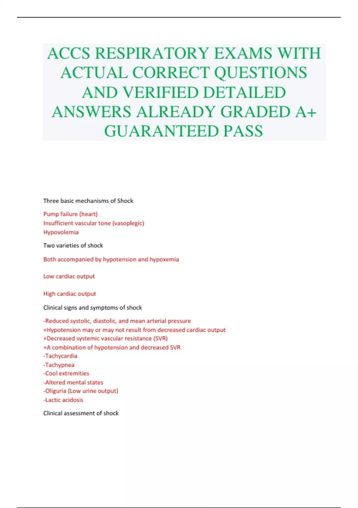 ACCS RESPIRATORY EXAMS WITH ACTUAL CORRECT QUESTIONS AND VERIFIED DETAILED ANSWERS ALREADY GRADED A+ GUARANTEED PASS