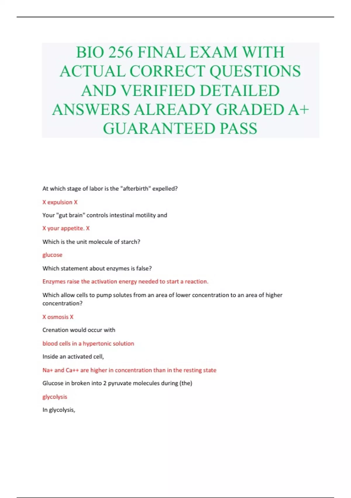 BIO 256 FINAL EXAM WITH ACTUAL CORRECT QUESTIONS AND VERIFIED DETAILED ANSWERS ALREADY GRADED A+ GUARANTEED PASS