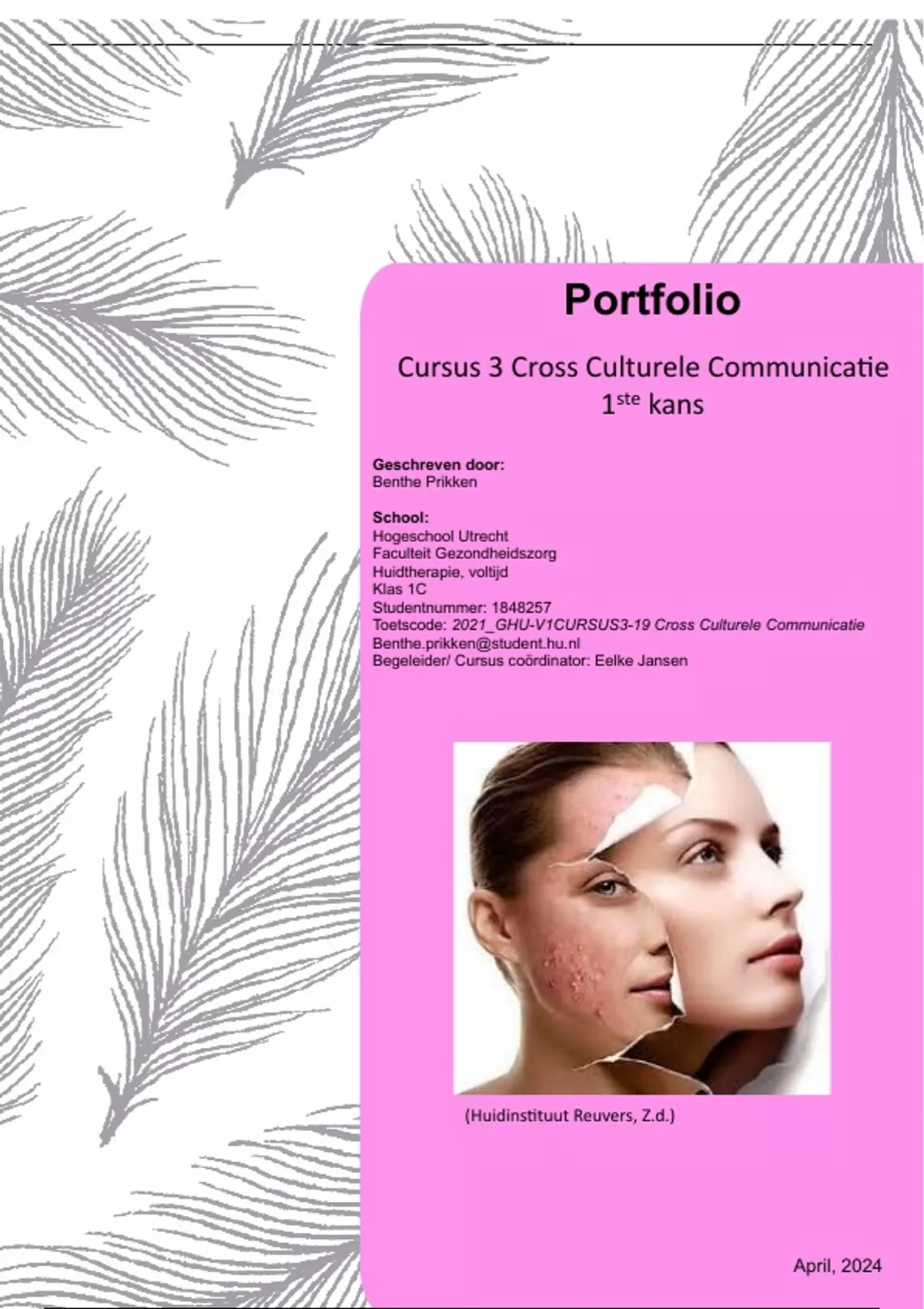 Mijn naam is Benthe Prikken en ik studeer huidtherapie aan de Hogeschool in Utrecht. Dit portfolio is