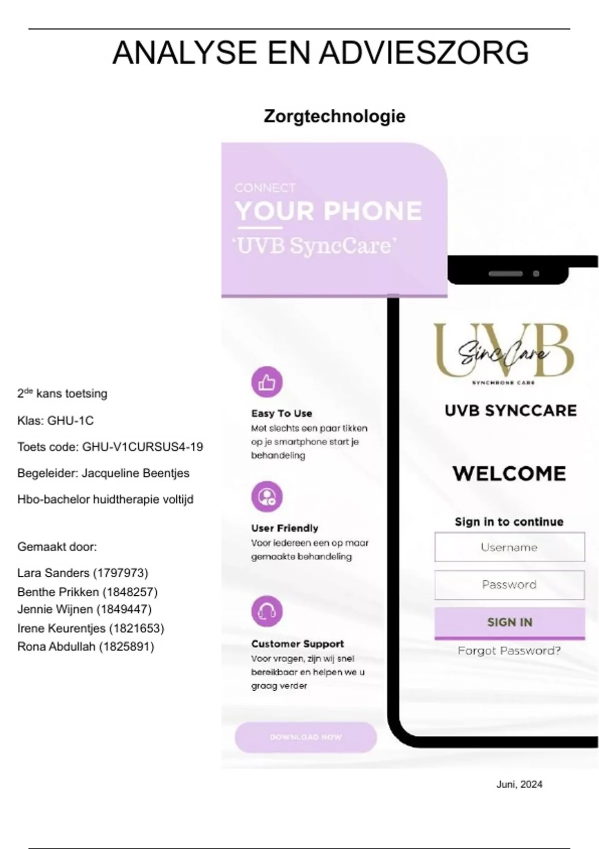 Als groepje hebben wij een eigen app bedacht genaamd "UVB Sync Care". Deze app kun je koppelen