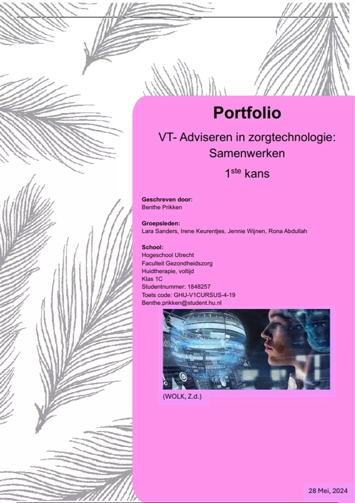 Utrecht. Dit verslag is tot stand gekomen naar aanleiding van cursus 4: Adviseren in Zorgtechnologie.
