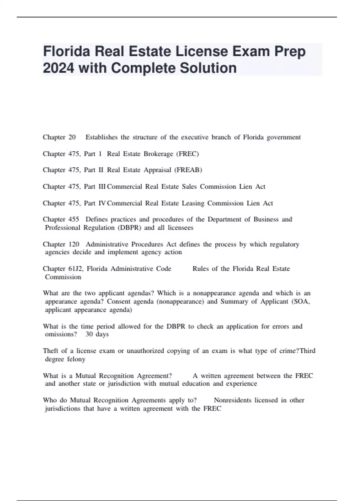 Florida Real Estate License Exam Prep 2024 with Complete Solution