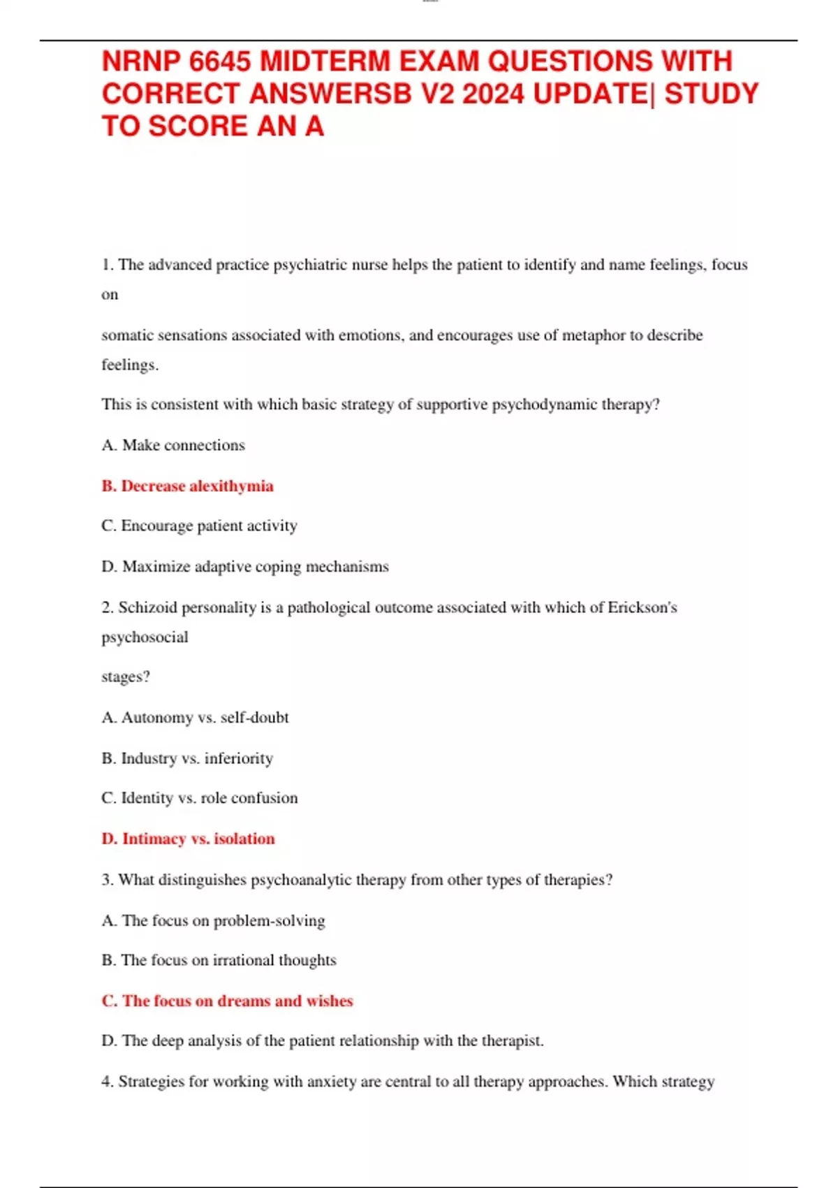 CORRECT ANSWERSB V2 2024 UPDATE| STUDY