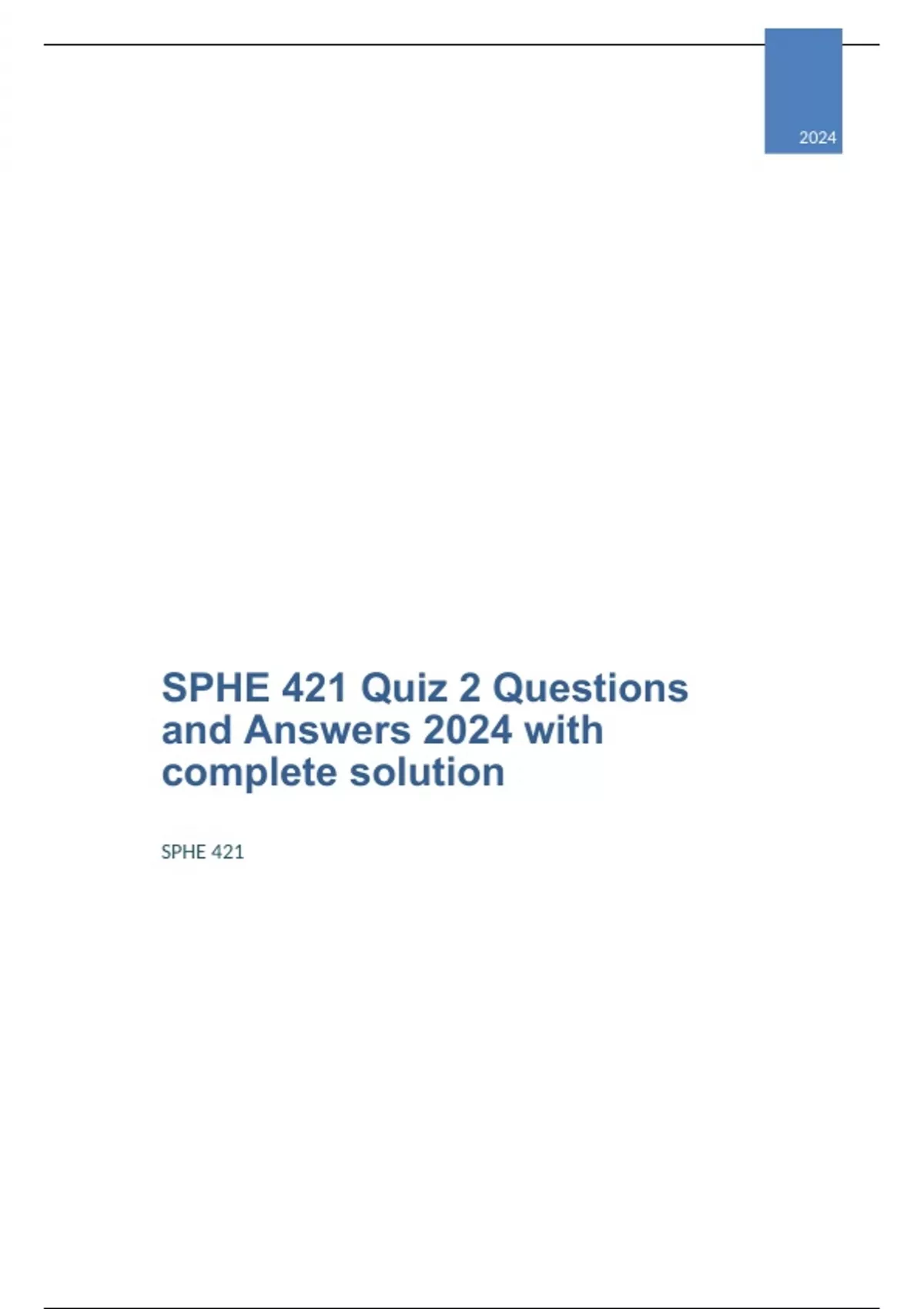 SPHE 421 Quiz 2 Questions and Answers 2024 with complete solution