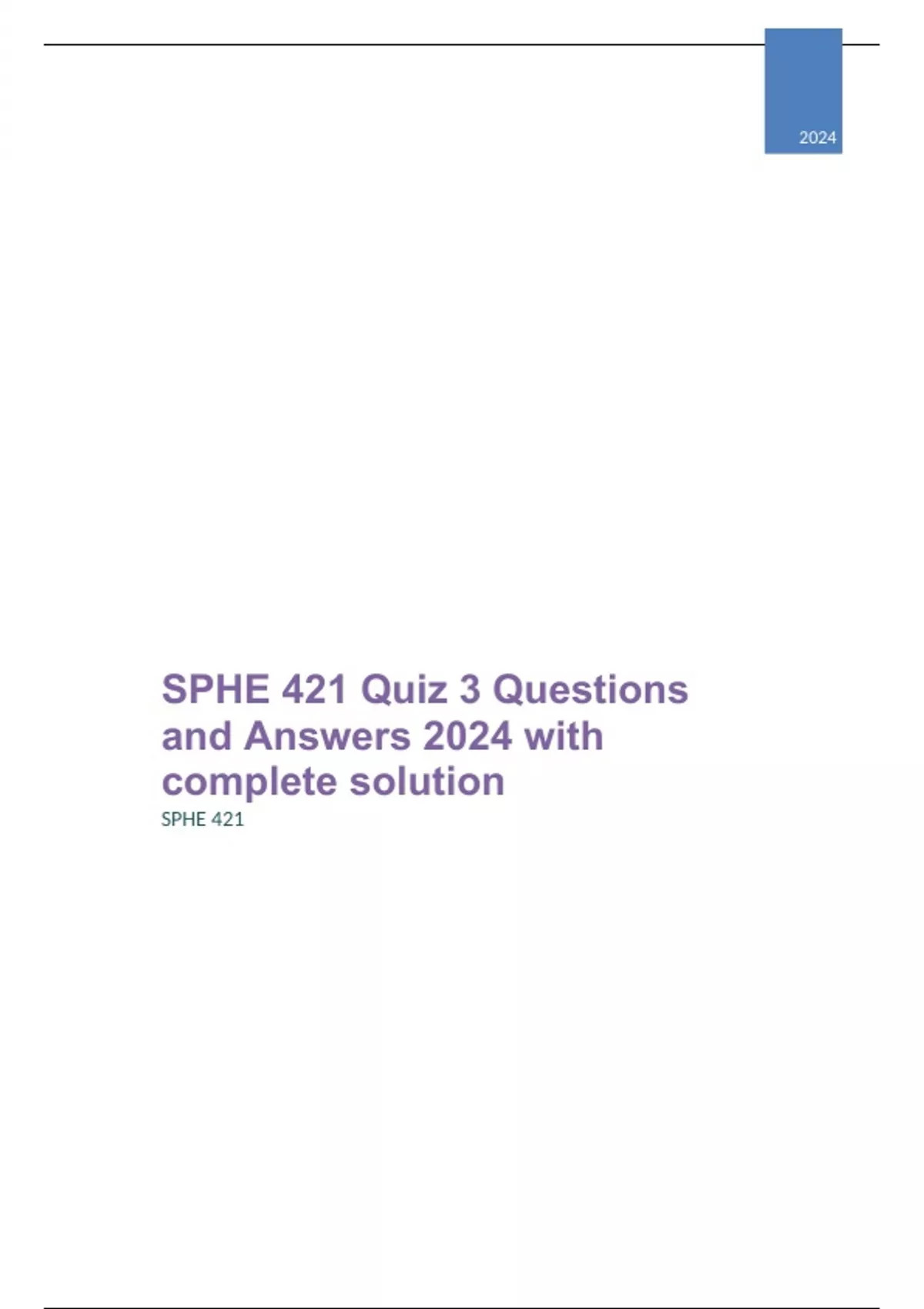 SPHE 421 Quiz 3 Questions and Answers 2024 with complete solution