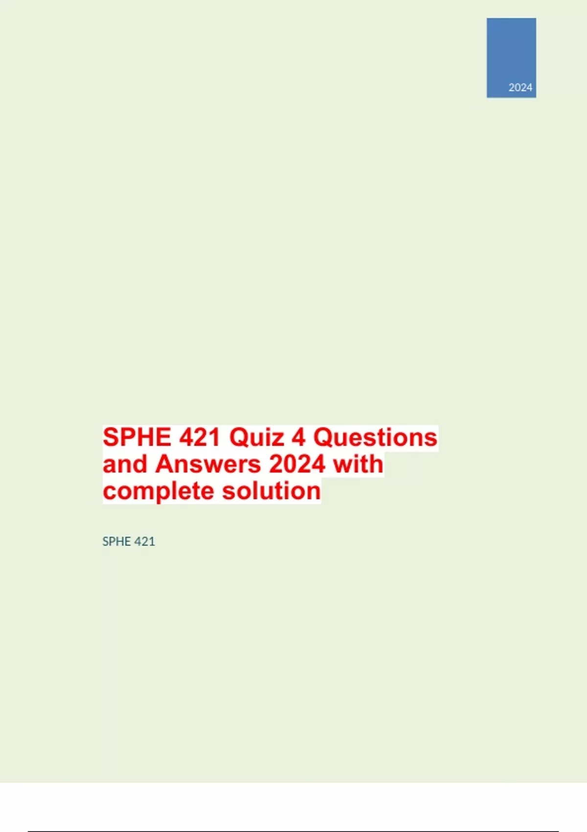 SPHE 421 Quiz 4 Questions and Answers 2024 with complete solution