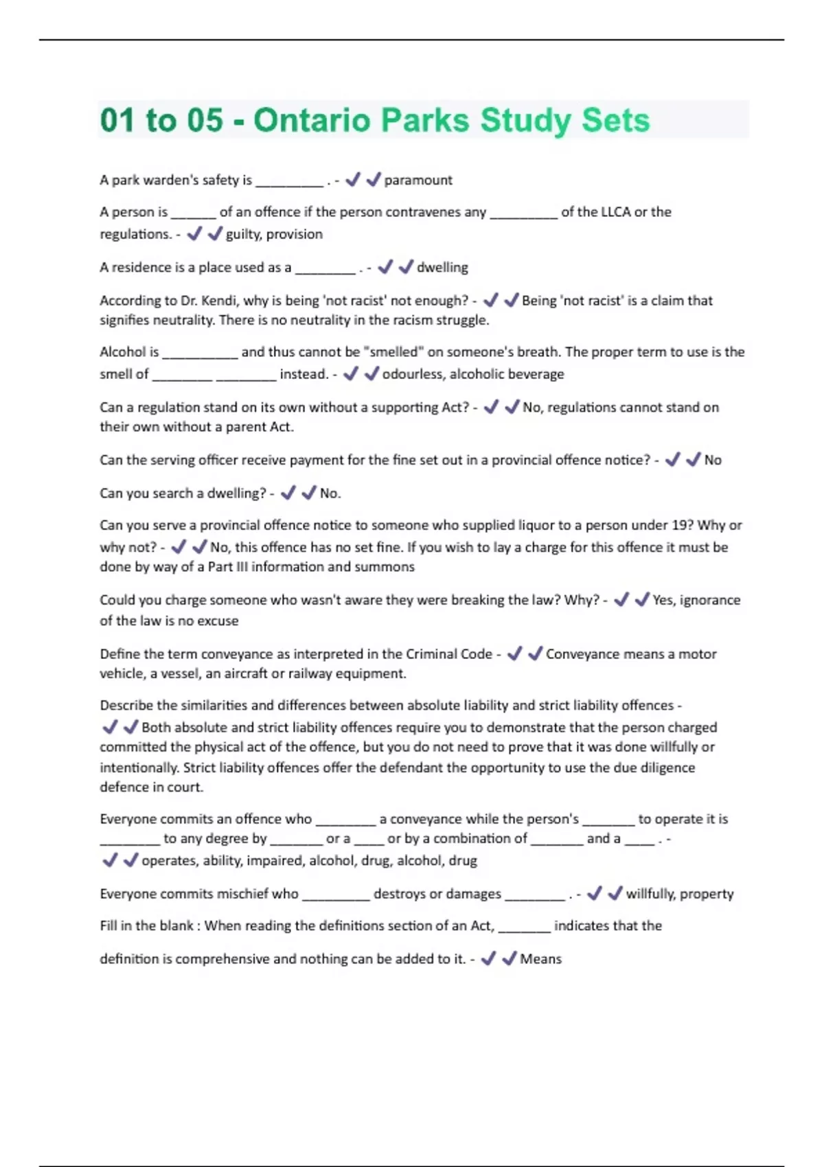 01 to 05 - Ontario Parks Study Sets Questions & Answers Rated 100% Correct