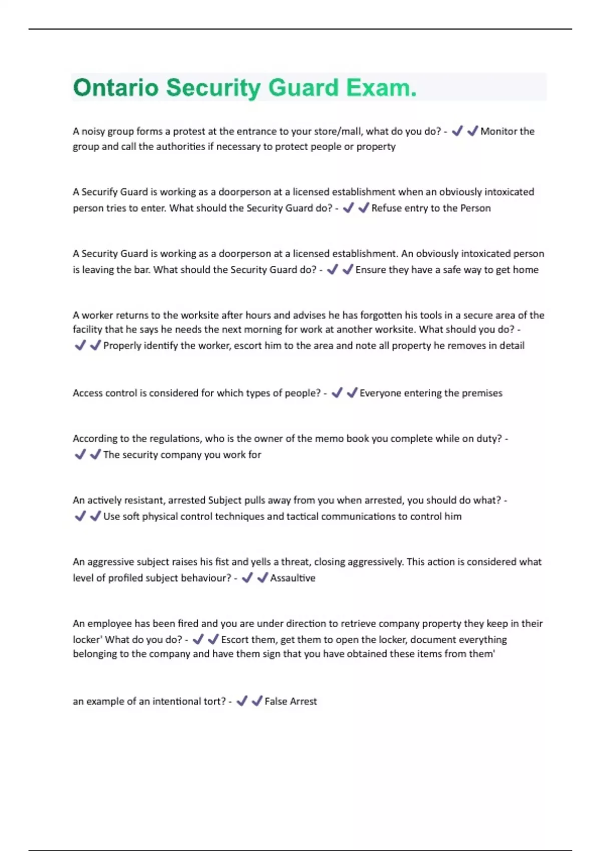 Ontario Security Guard Exam Questions & Answers Rated 100% Correct