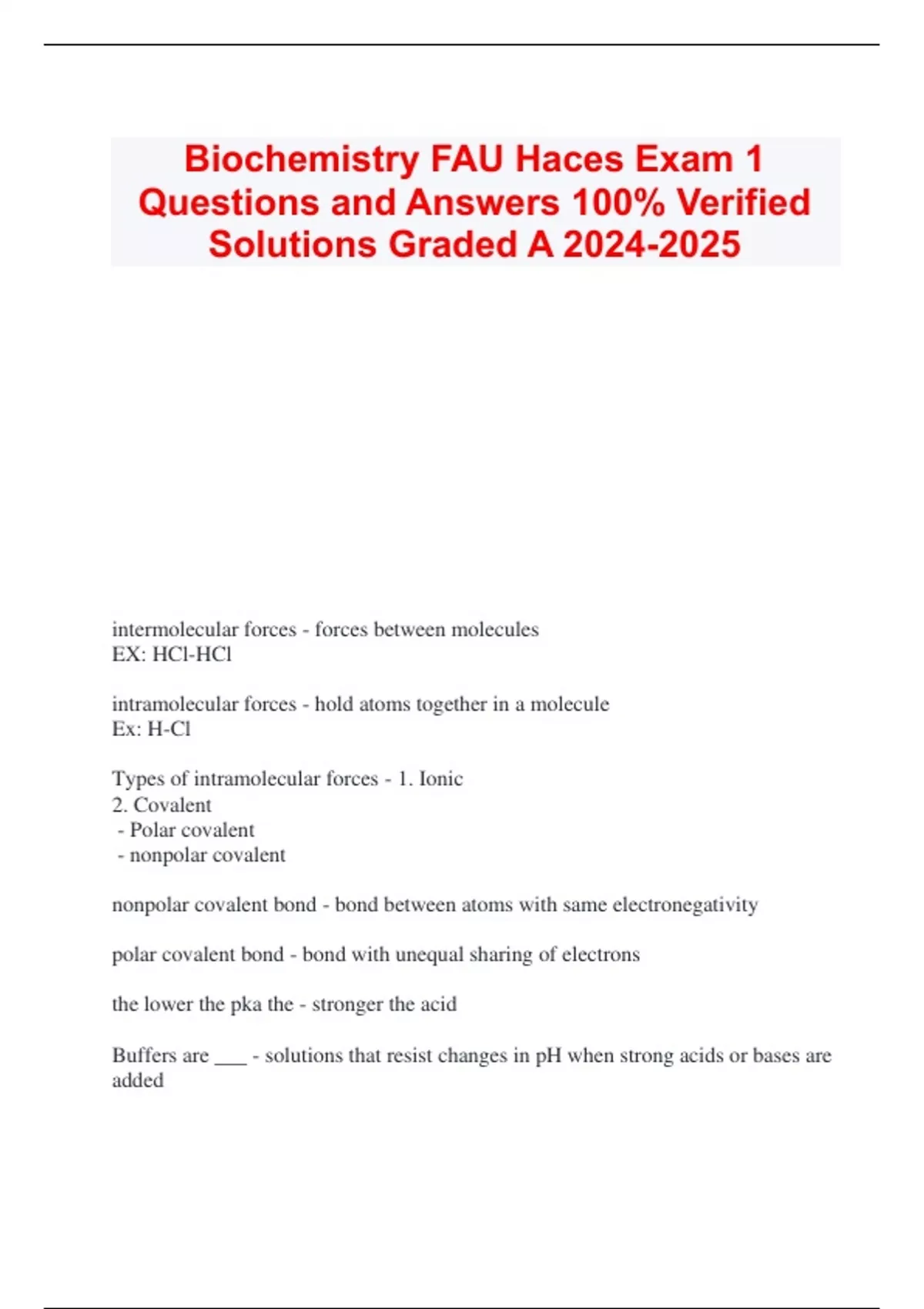 Biochemistry FAU Haces Exam 1 Questions and Answers 100% Verified Solutions Graded A