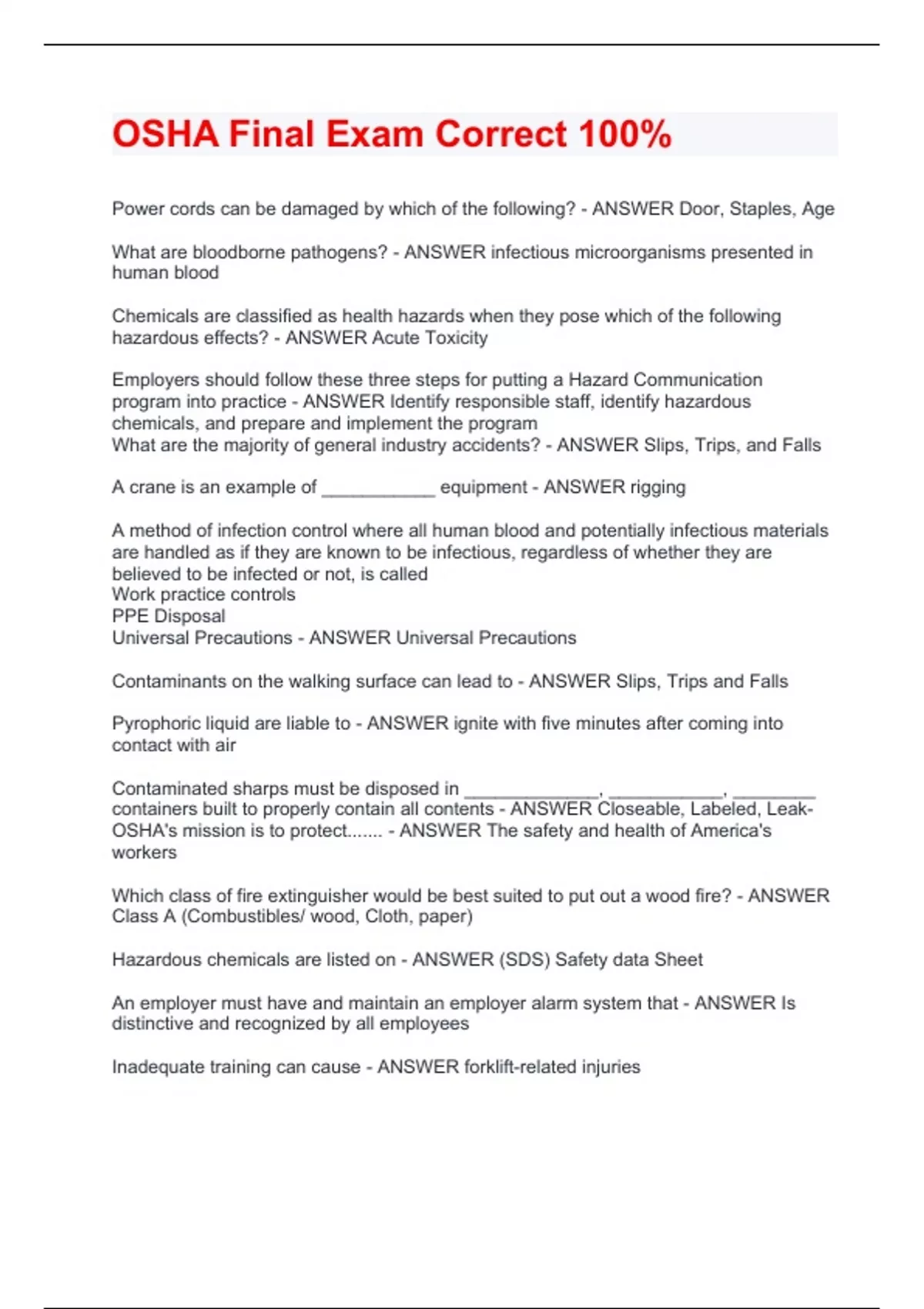 OSHA Final Exam Correct 100%